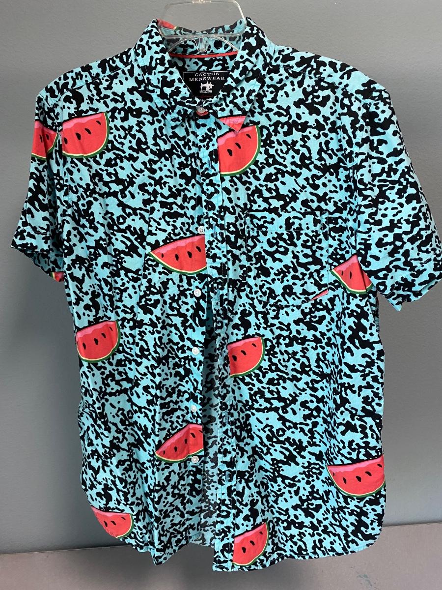 Cactus Menswear Retro Style Watermelon Pattern Button Front Shirt. Large