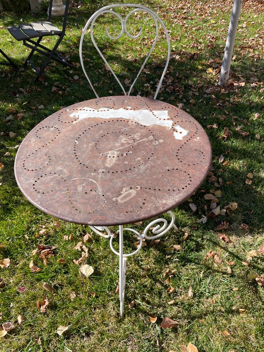 CAFE TABLE AND CHAIR COULD USE A NEW PAINT JOB