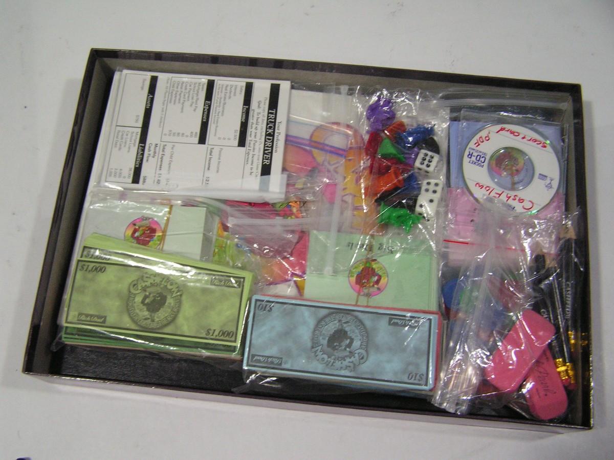 “CA$HFLOW” the game, From Rich Dad, Poor Dad by Robert Kiyosaki. Learn how to raise your financial I.Q. with this fun and educational game. Teaches what to invest in to profit for the future and what to avoid. Turns learning into fun for anyone. Complete game set in near mint condition, with extra score pads and a mini CD with a printable score pad file for a never ending supply of score pads. And 2 additional mini calculators.