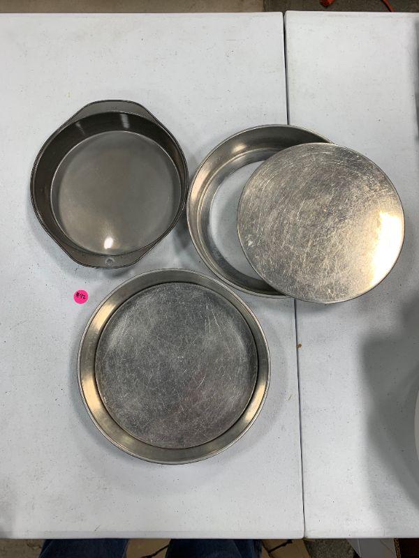 Two pans have removable bottoms.