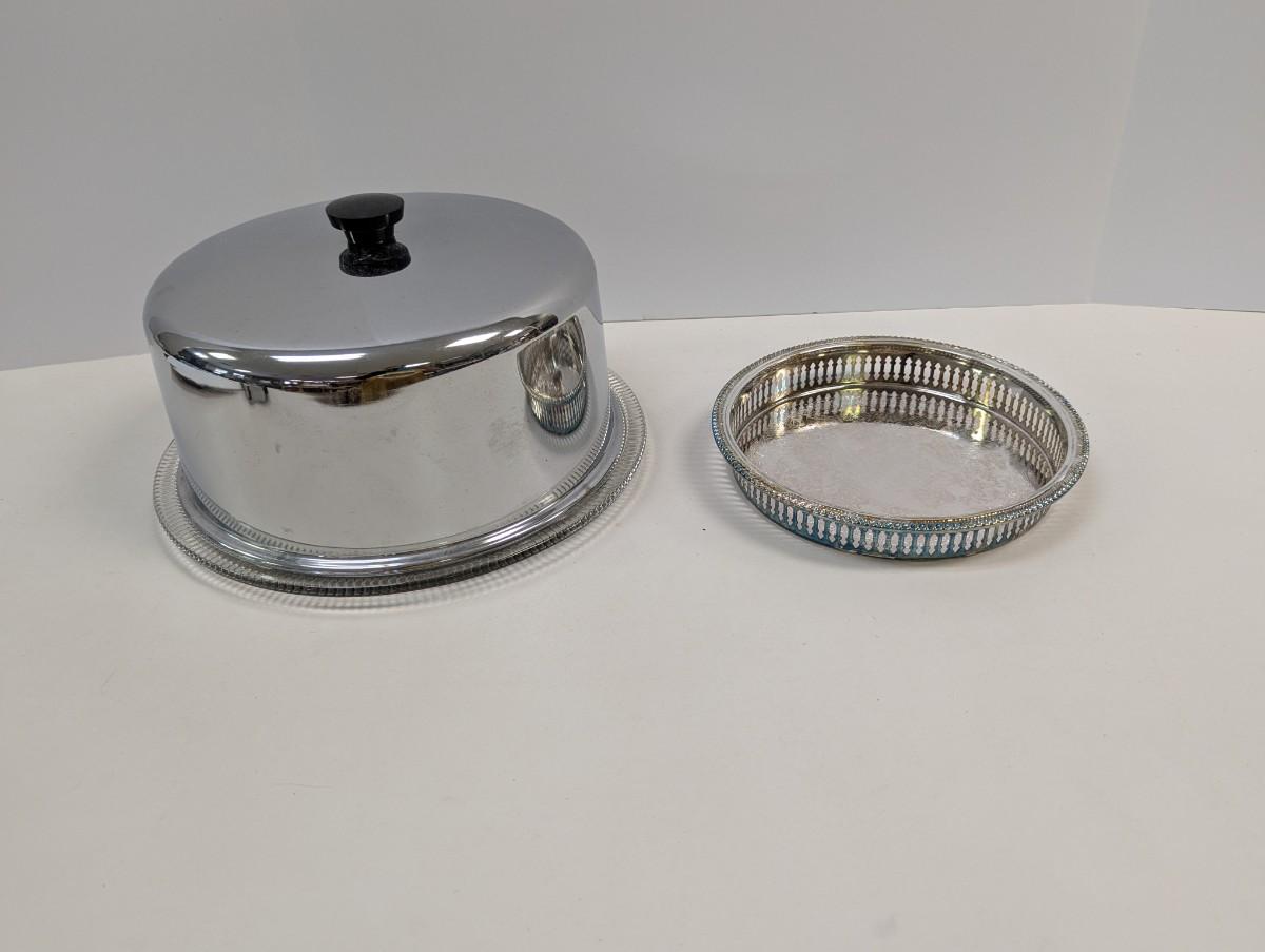 Retro Chrome Domed Cake Cover & Plate - Silverplated Tray