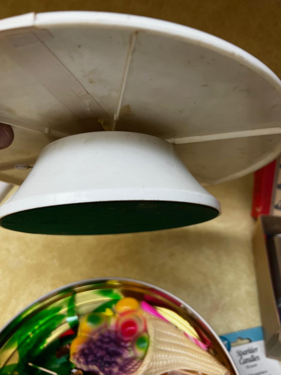 Cake spinner with music but the top is cracked You would not see the crack with a cake on it. Its CUTE!!!