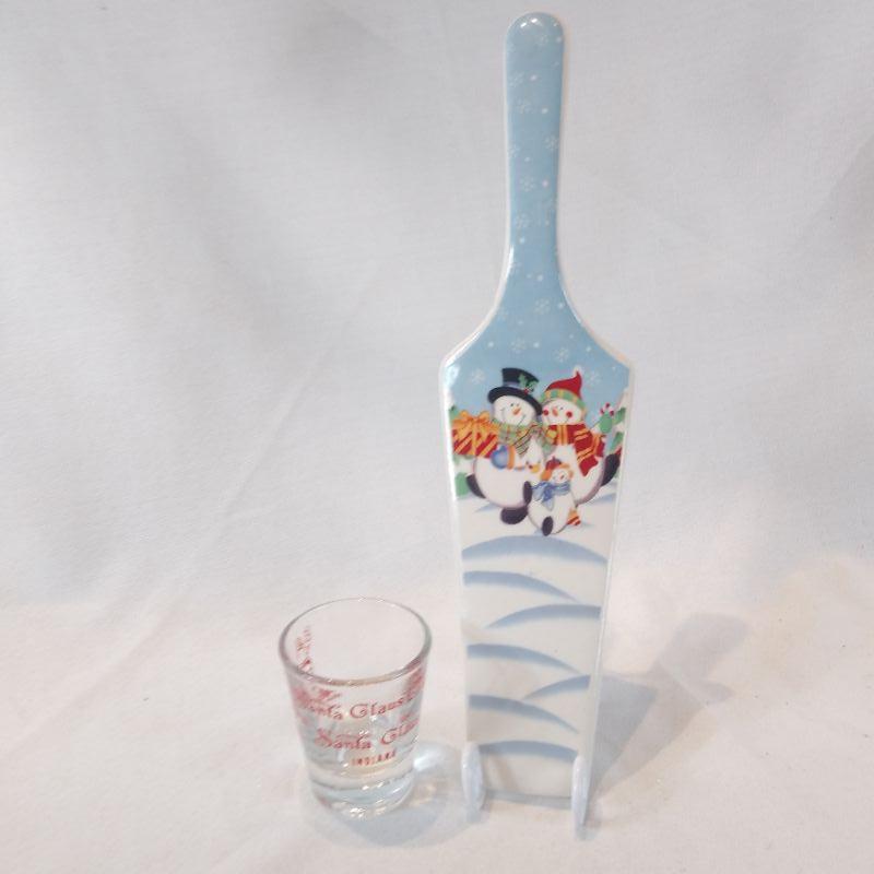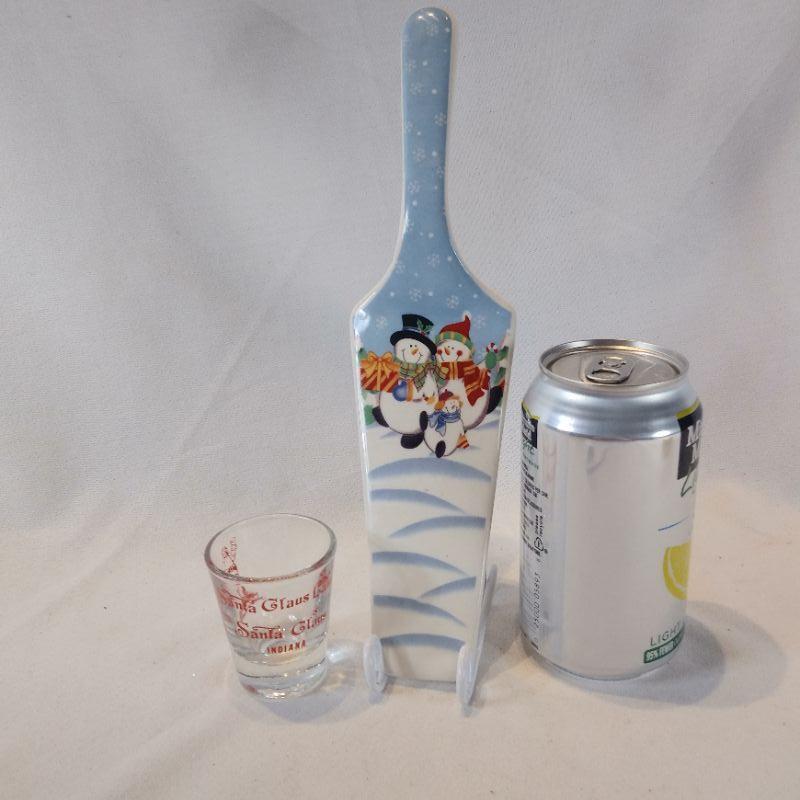 This offering is for a vintage Santa Claus Land, Indiana souvenir jigger. Additionally we have added a fun snowman ceramic cake server to help make the bid more worthwhile. Both are in very good condition. Santa Claus Land has morphed into Holiday World but many folk collect those old souvenir items of the Santa Claus era.