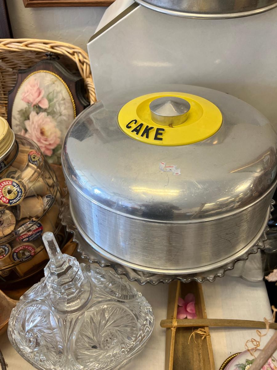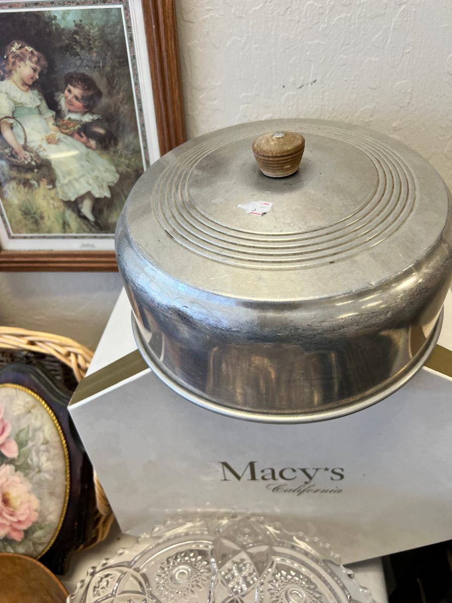 Mid Century Cake trays glass pedestals Aluminum covers,