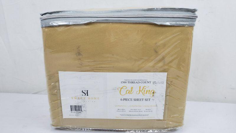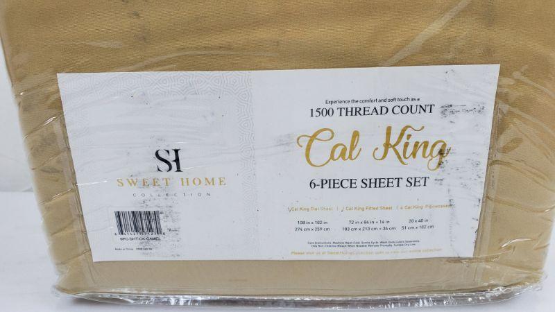Cal King 6 Piece Sheet Set, 1500 Thread Count, Camel, Sweet Home - New