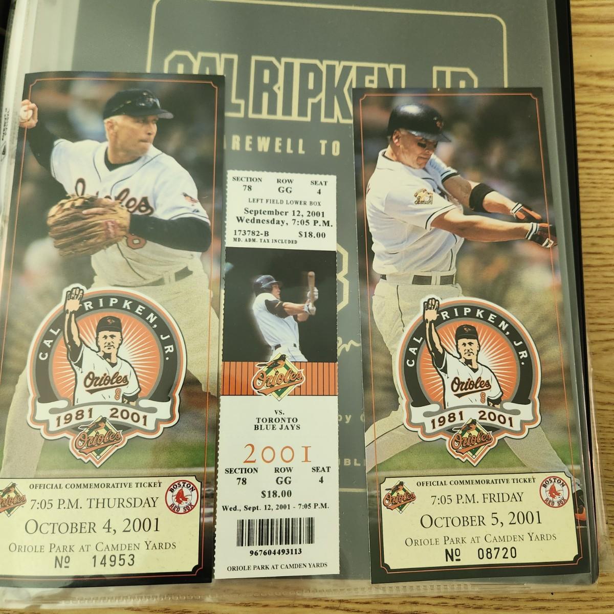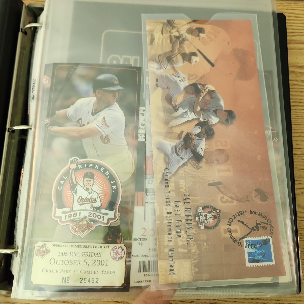 Cal Ripken Binder Filled with programs , Game Tickets 22 kt Gold Cards