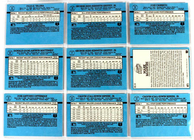 CAL RIPKEN Don Mattingly KEN GRIFFEY Mark McGwire BASEBALL CARDS SET OF 9 - HIGH GRADE CARDS!