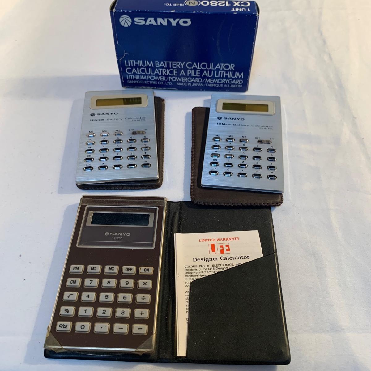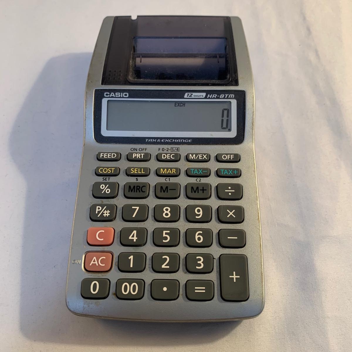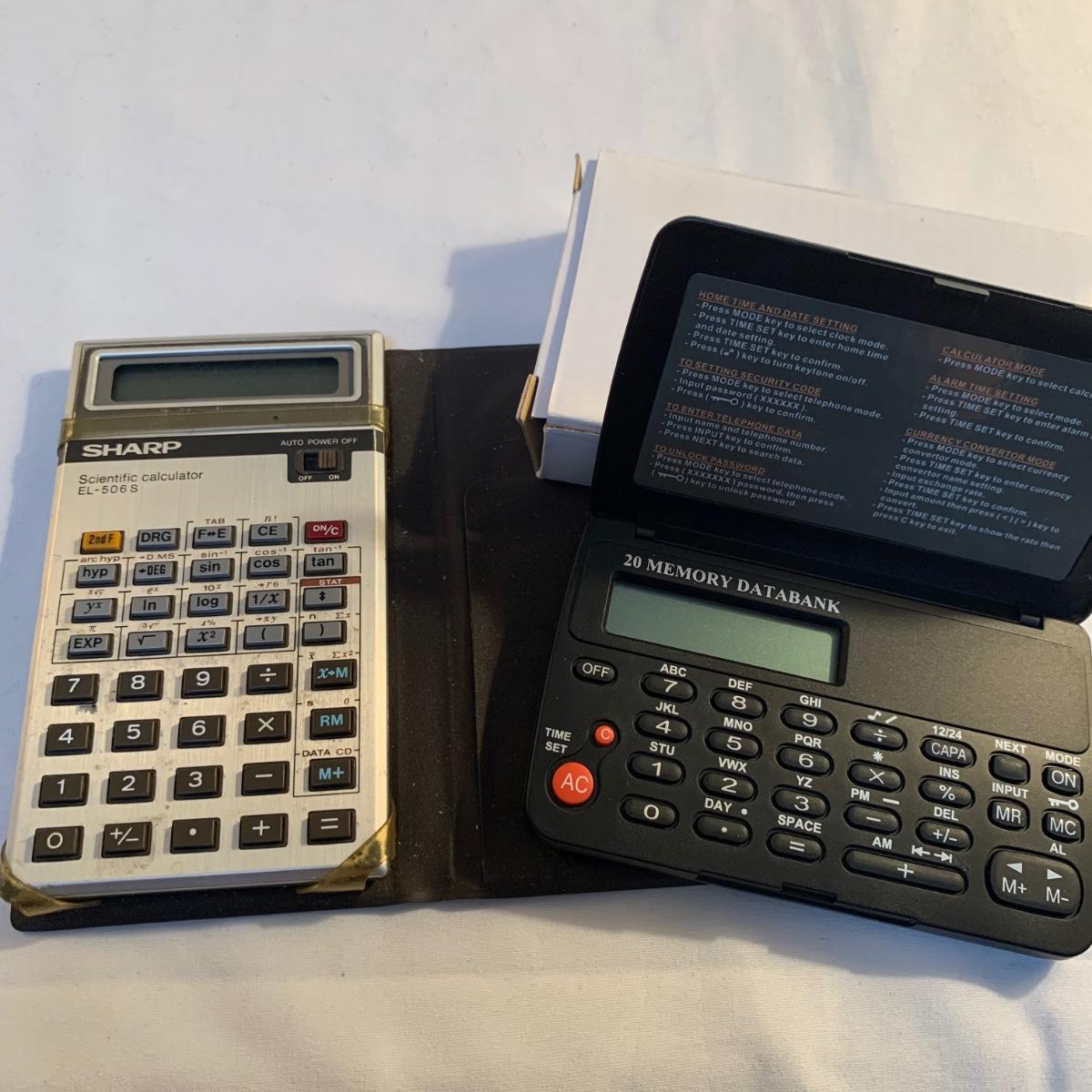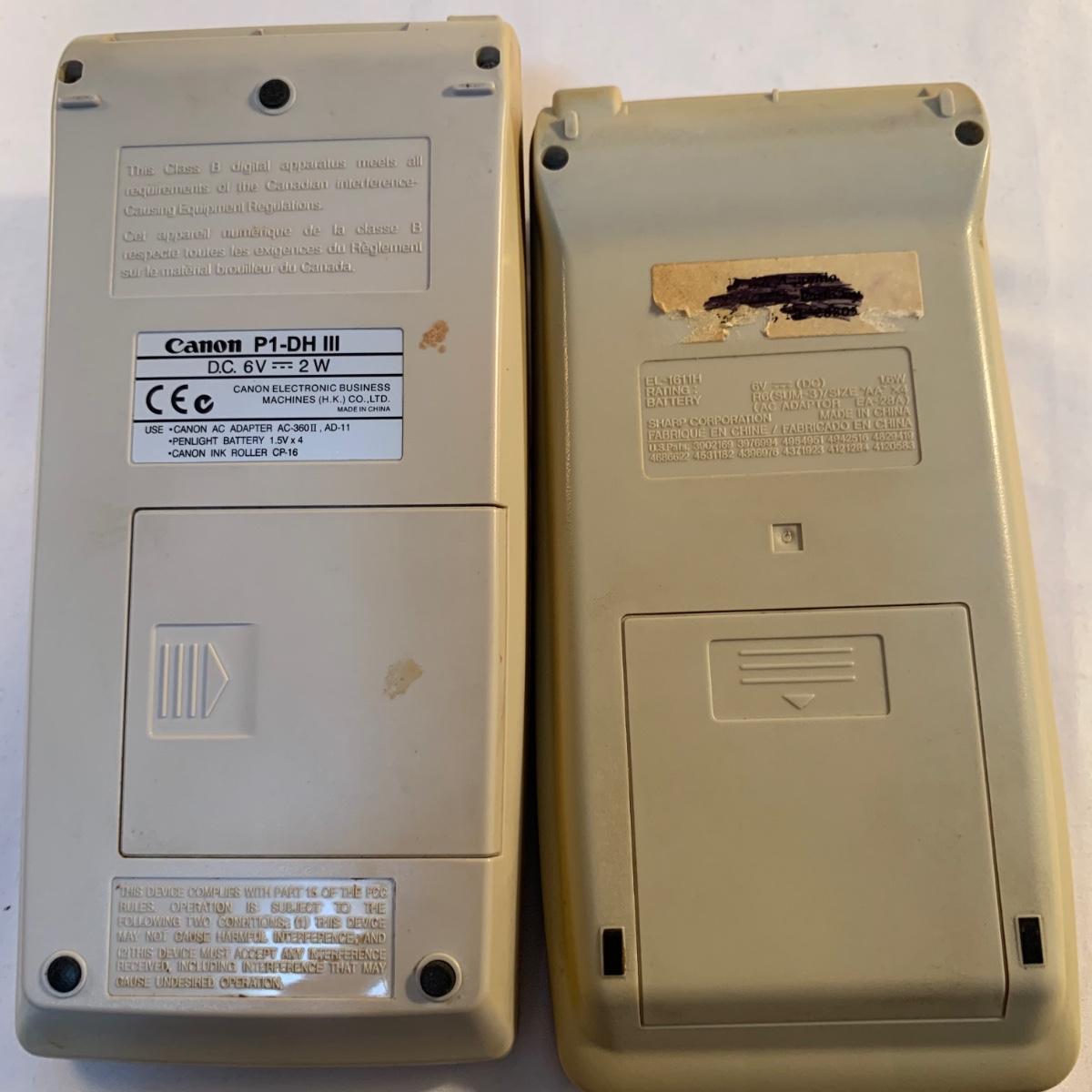 20+ calculators in this collection! Includes various printing calculators: a Sharp EL-2192C, a Sharp Elsi Mate EL-1611H, a Canon Palm Printer P1-DH III, and a Casio HR-8TM. One of the calculators is a radio! You’ll also find a Texas Instruments TI-1250 as well as various calculators from Sanyo, Sharp, Radio Shack, Casio, & Canon. Most are battery powered and need their batteries replaced. A few are solar powered. One (the Sharp EL-2192C) has an electric cord; it turned on when plugged in. Calculators range from good condition to like new.