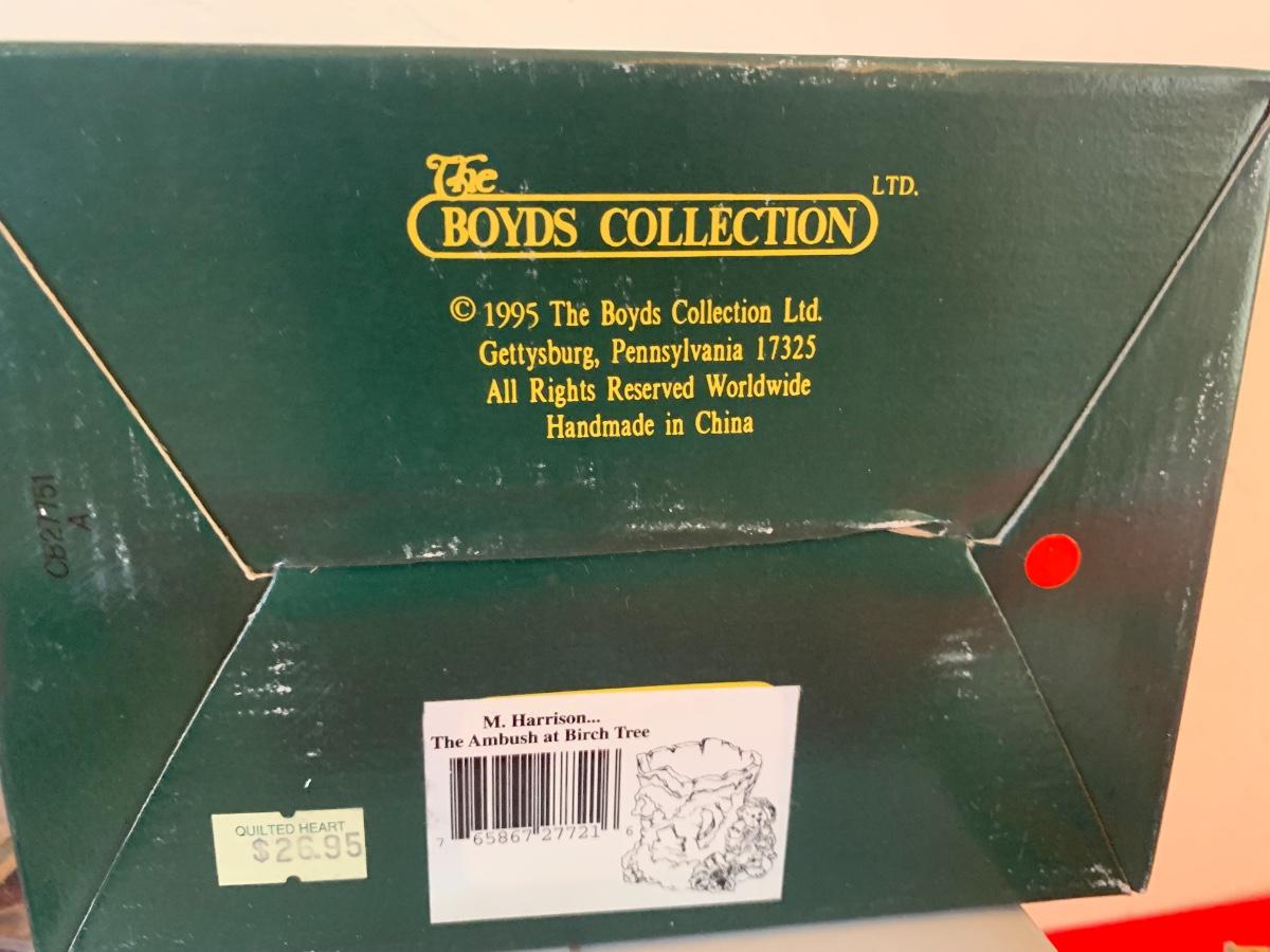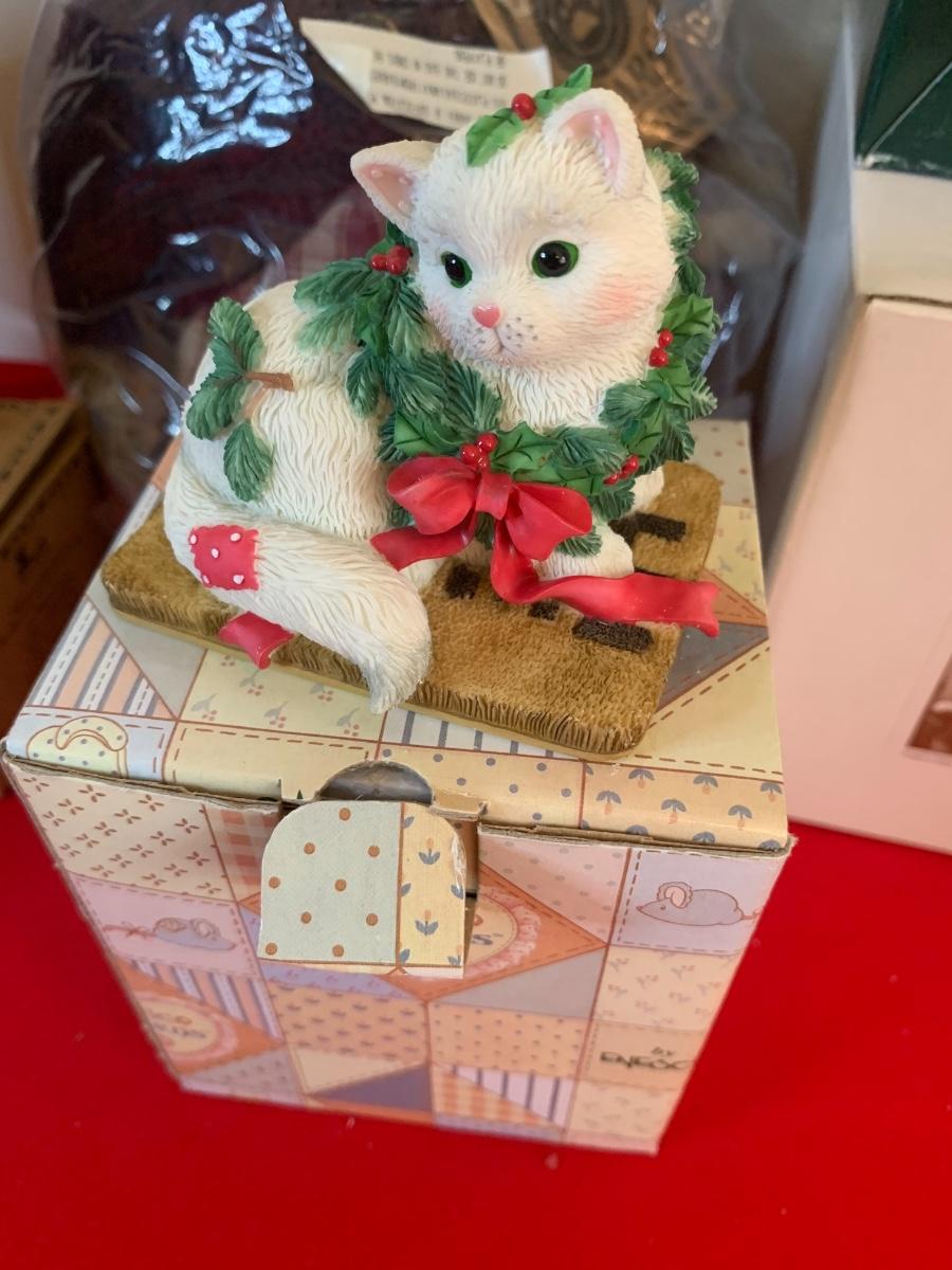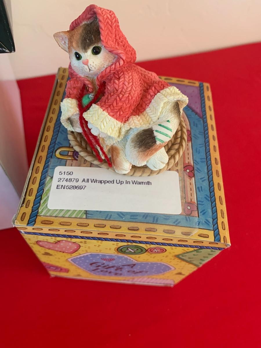 Lot includes collectible figurines including Calico Kittens, Boyd’s Bears, a desk animal and a BB stuffy. All in like new condition in original packaging.
