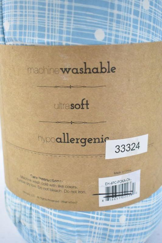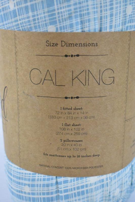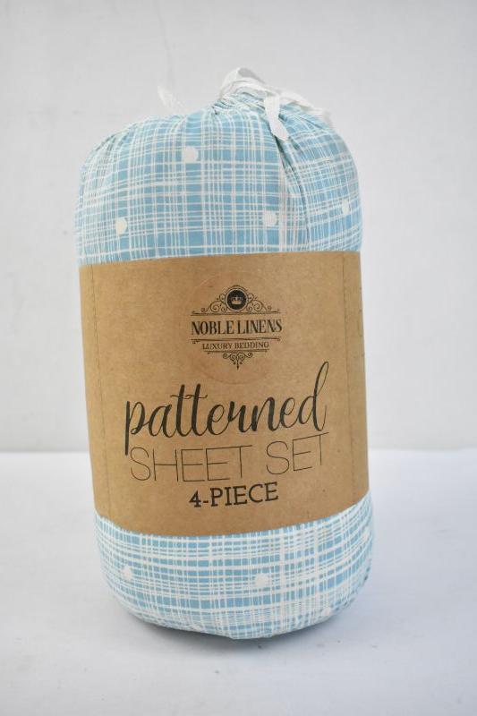 California King Patterned Sheet Set 4 Piece, Blue & Cream - New