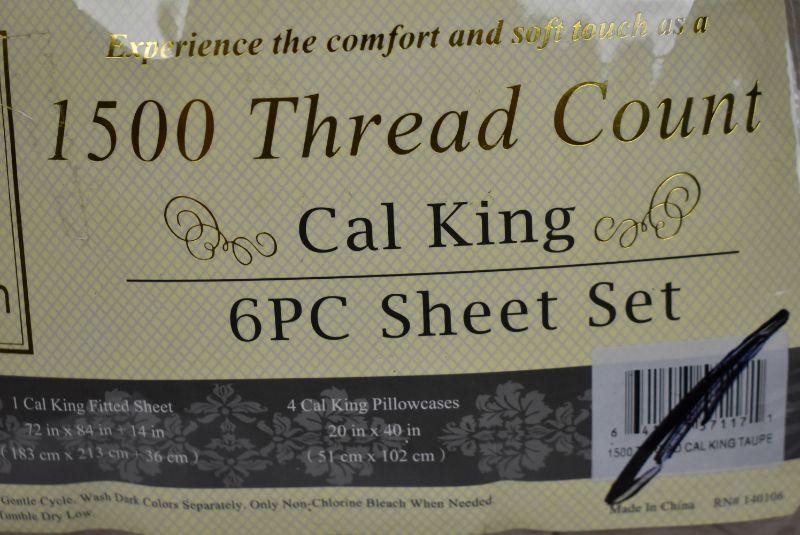 California King Sheet Set, Taupe: 6 Piece 1500 Thread Count Egyptian Quality Deep Pocket. Open Package