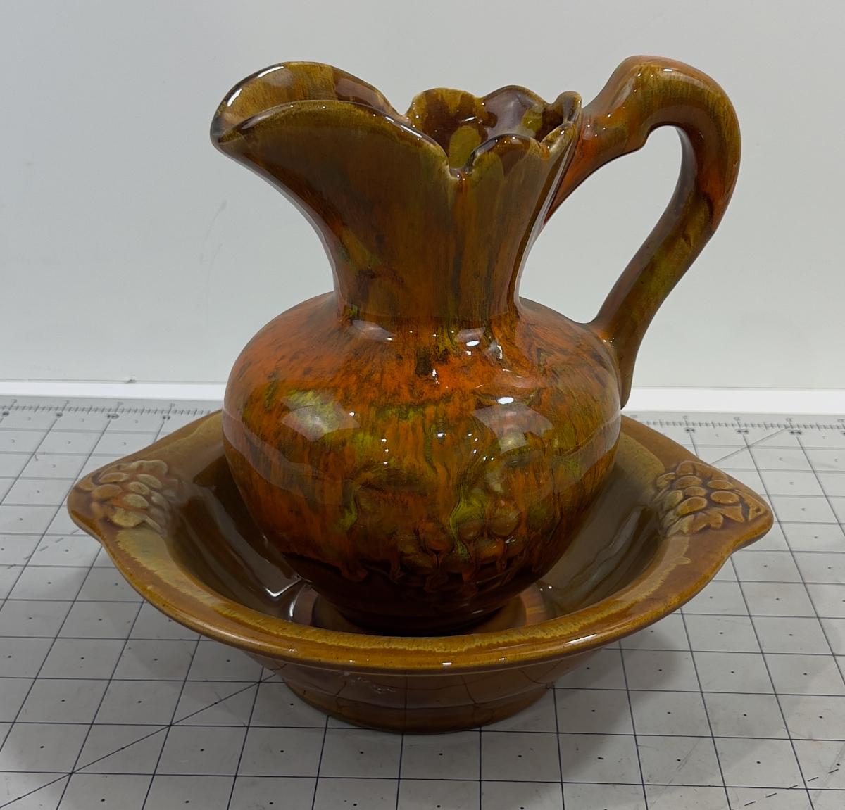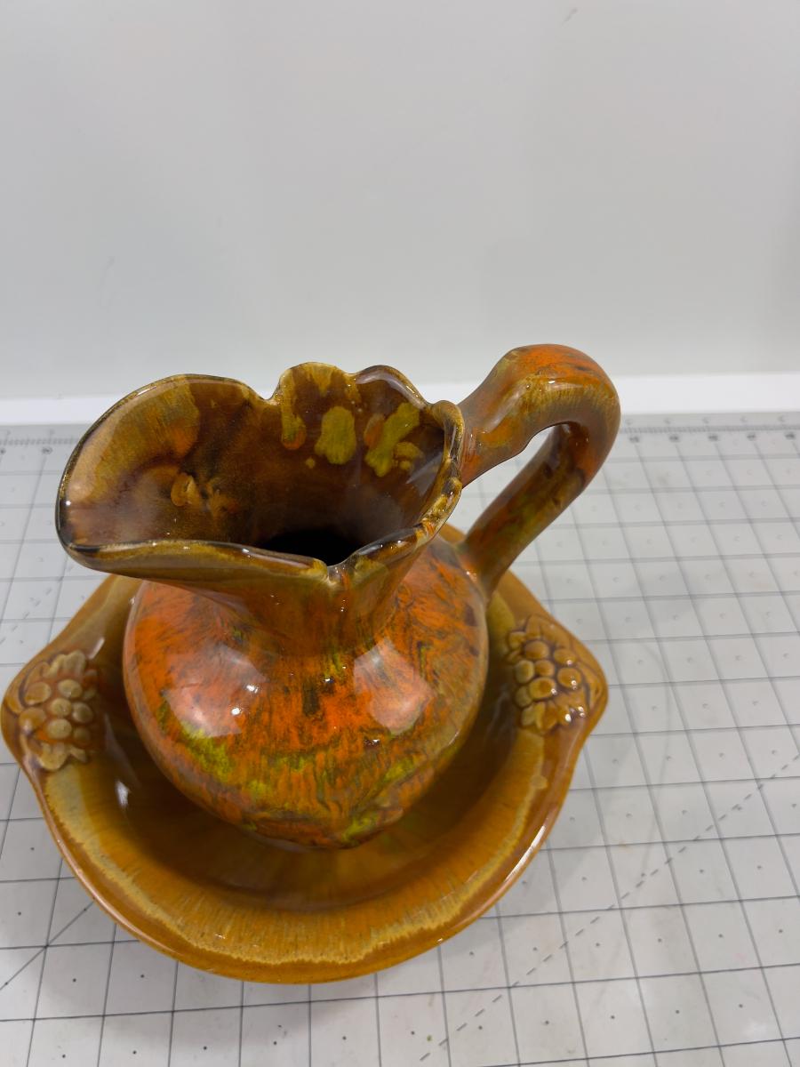California Pottery Bowl & Pitcher Drip Glaze Carmel Color