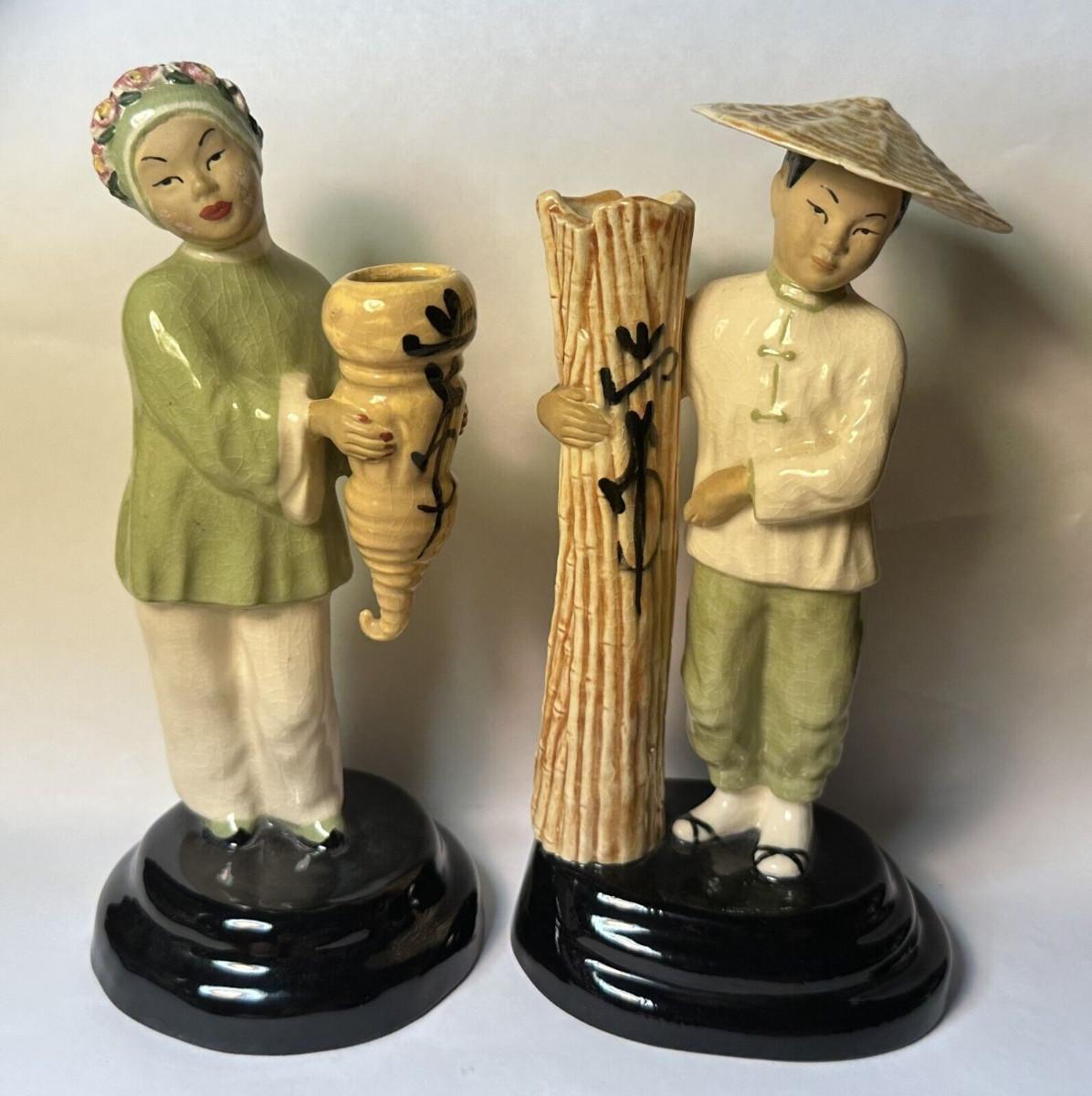 CALIFORNIA POTTERY POLLY WILSON ASIAN FIGURES PAIR