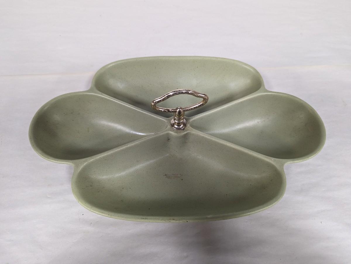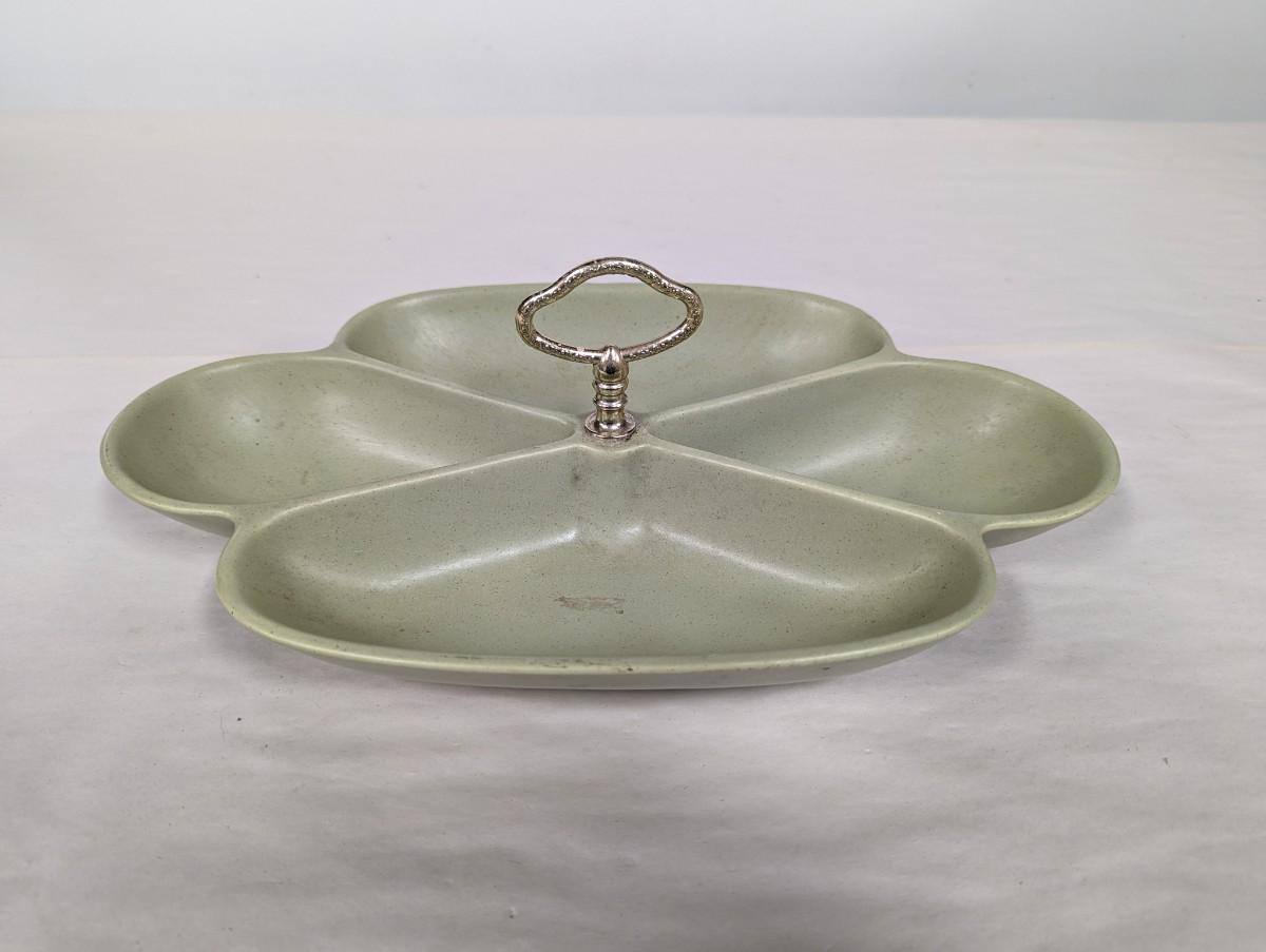 California USA Green Pottery Ceramic Center Handle Dish