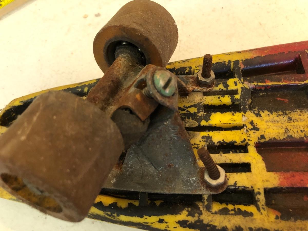 All items are sold as is, as found in the estate. Please see all photos for content, measurements and condition. Axel feels loose?