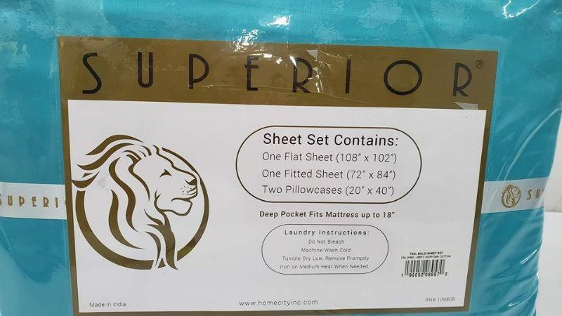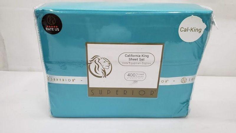 Cal-King Sheet Set, Teal, Superior, 400 Thread Count - New