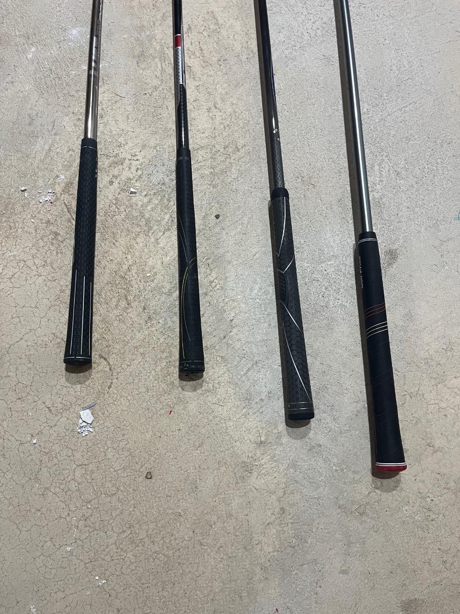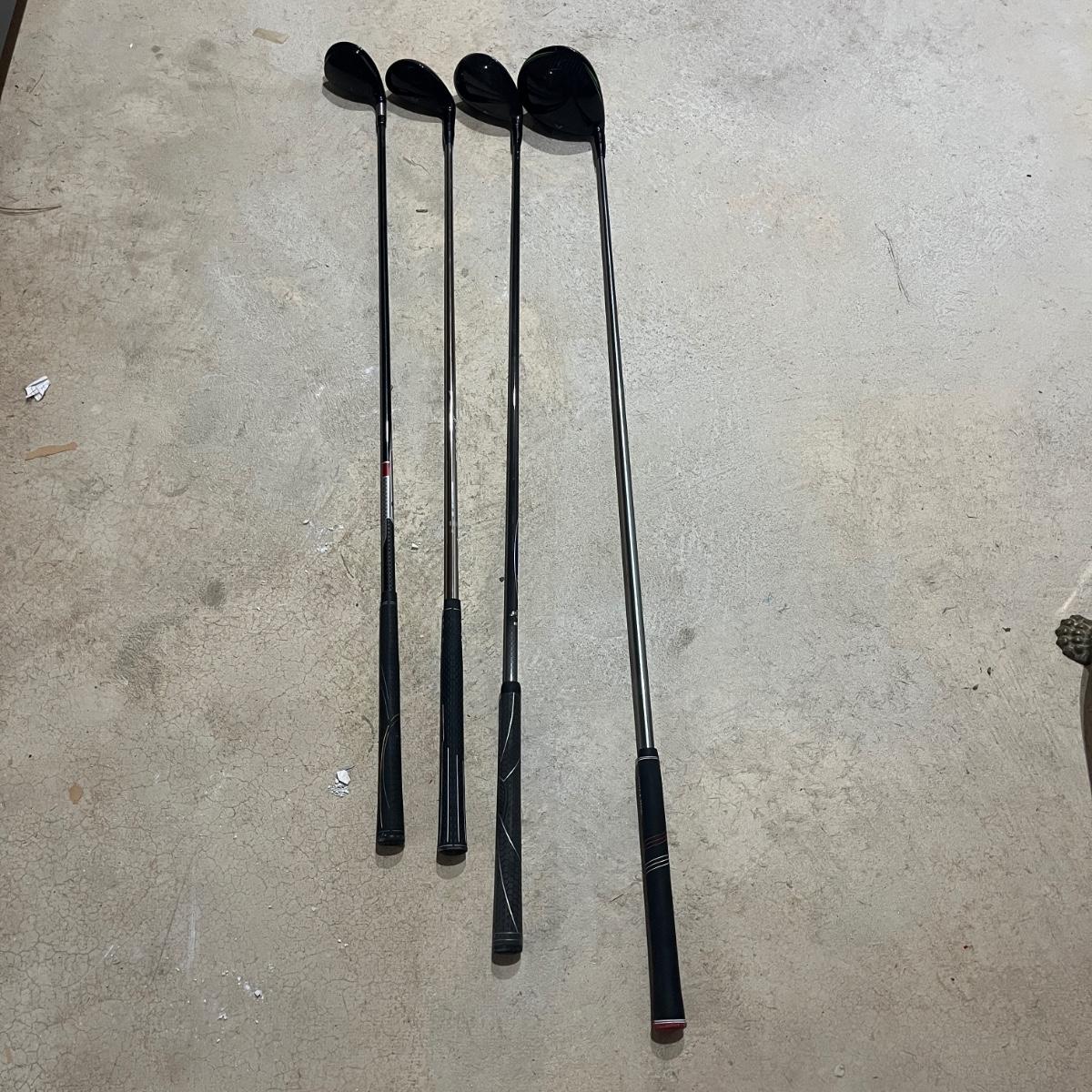 This selection of golf clubs includes two Callaway clubs, Titleist club and a Taylor Made club. The GBB Epic has a 5.5 shaft flex. The Titleist club has a flex-R. The TaylorMade has a flex-S. Lastly, the Callaway has a flex F3. Longest club measures 46".