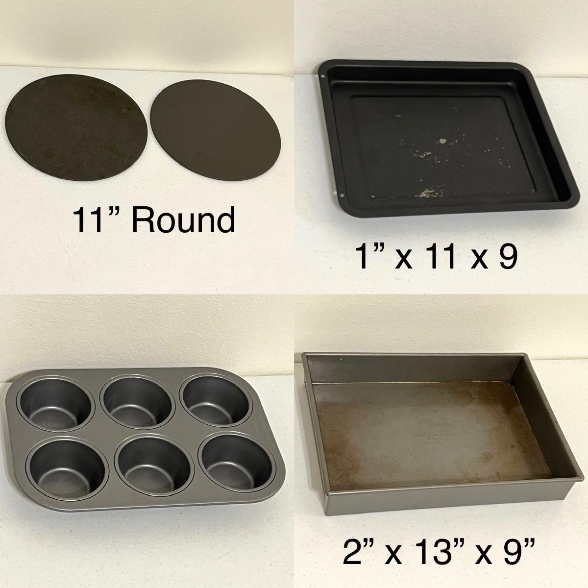 Has been used, but looks new ~ Includes: Oven, 2 pizza pans, rectangular cake pan, 6-cup muffin pan, baking pan, & user manual ~ Dehydrate rack is not included ~ Baking pan is the most used.