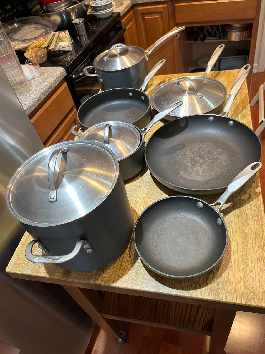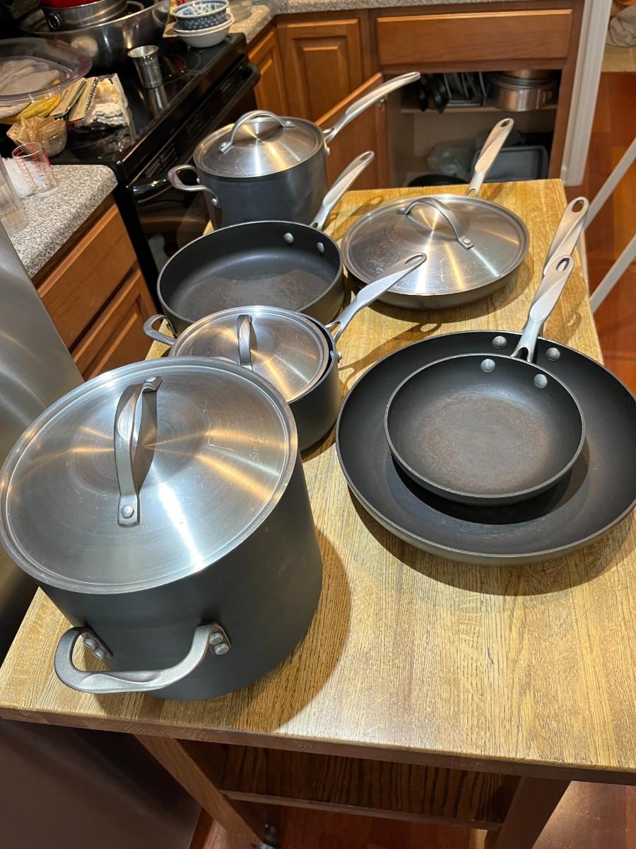 Calphalon Cookware Set and Lids 7 pieces of cookware and 5 lids See photos for condition