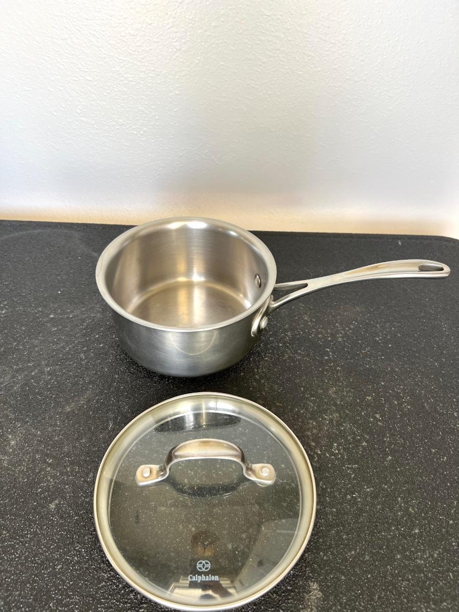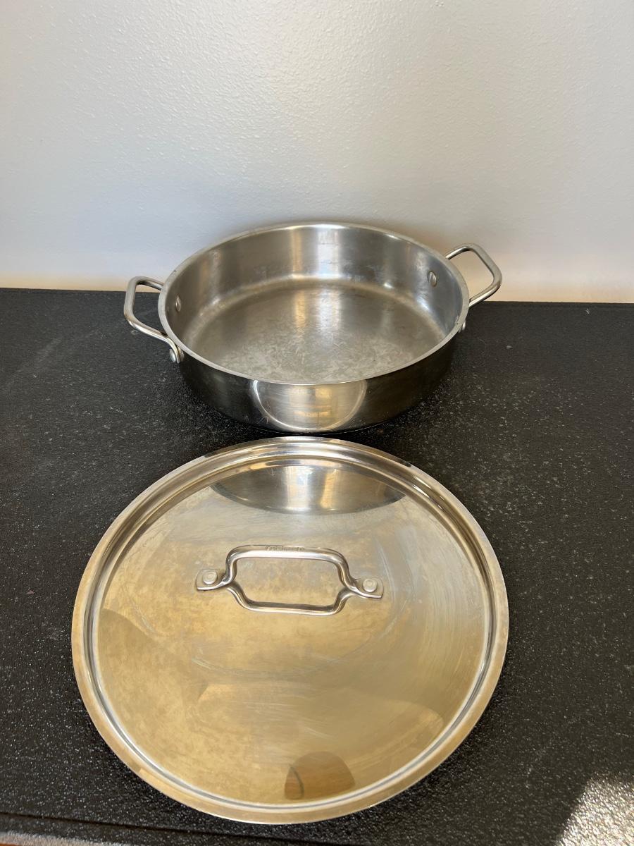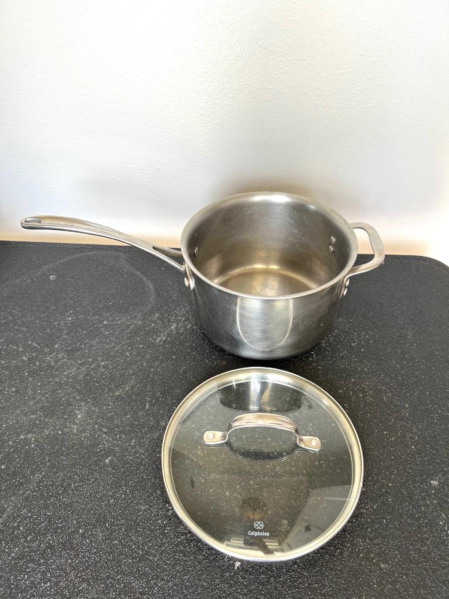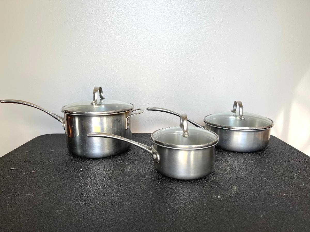 CALPHALON Stainless Steel set of 3 with lids. Sizes 8704 1/2“¢ 4 1/2 quart. 87822“¢ 2 1/2 quart. 8701 1/2 “¢ 1 1/2 QT. 855-30T Casserole 5.5 QT