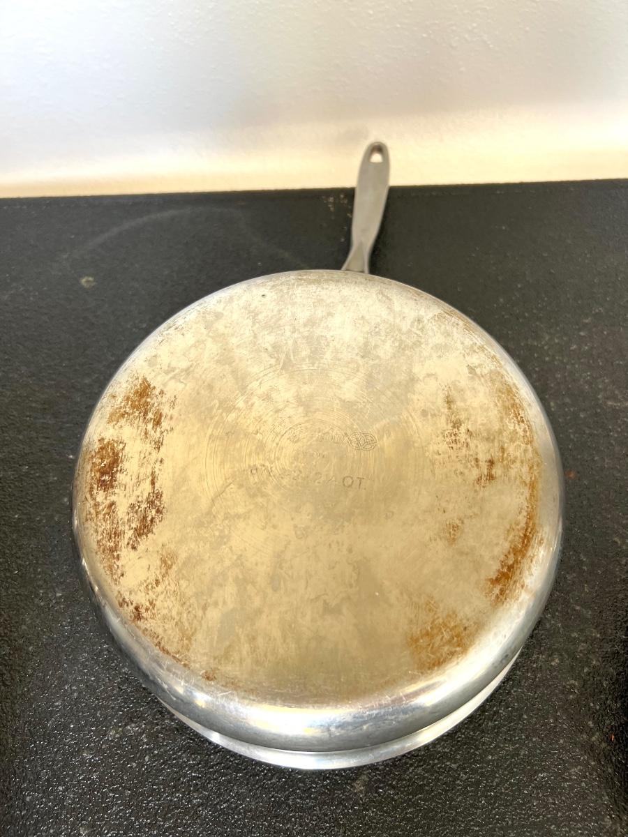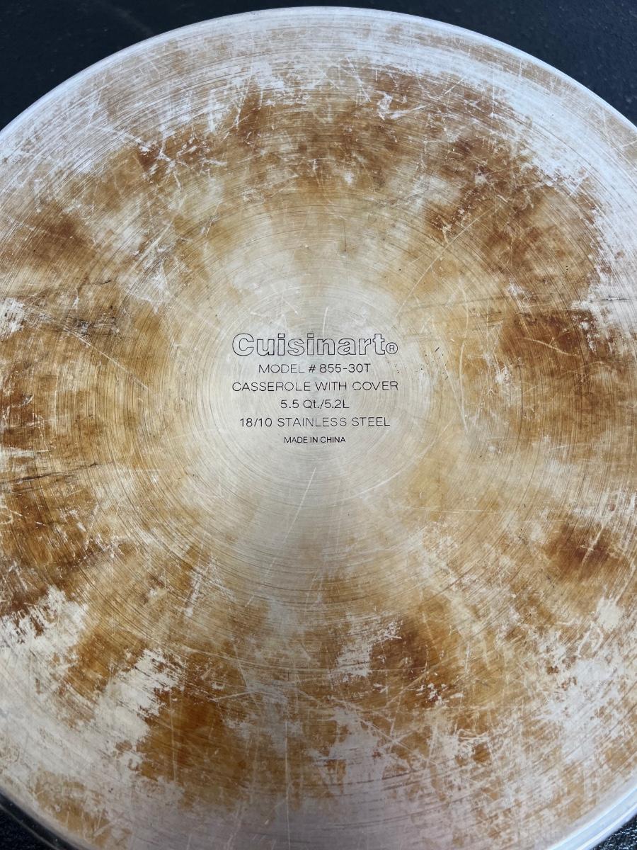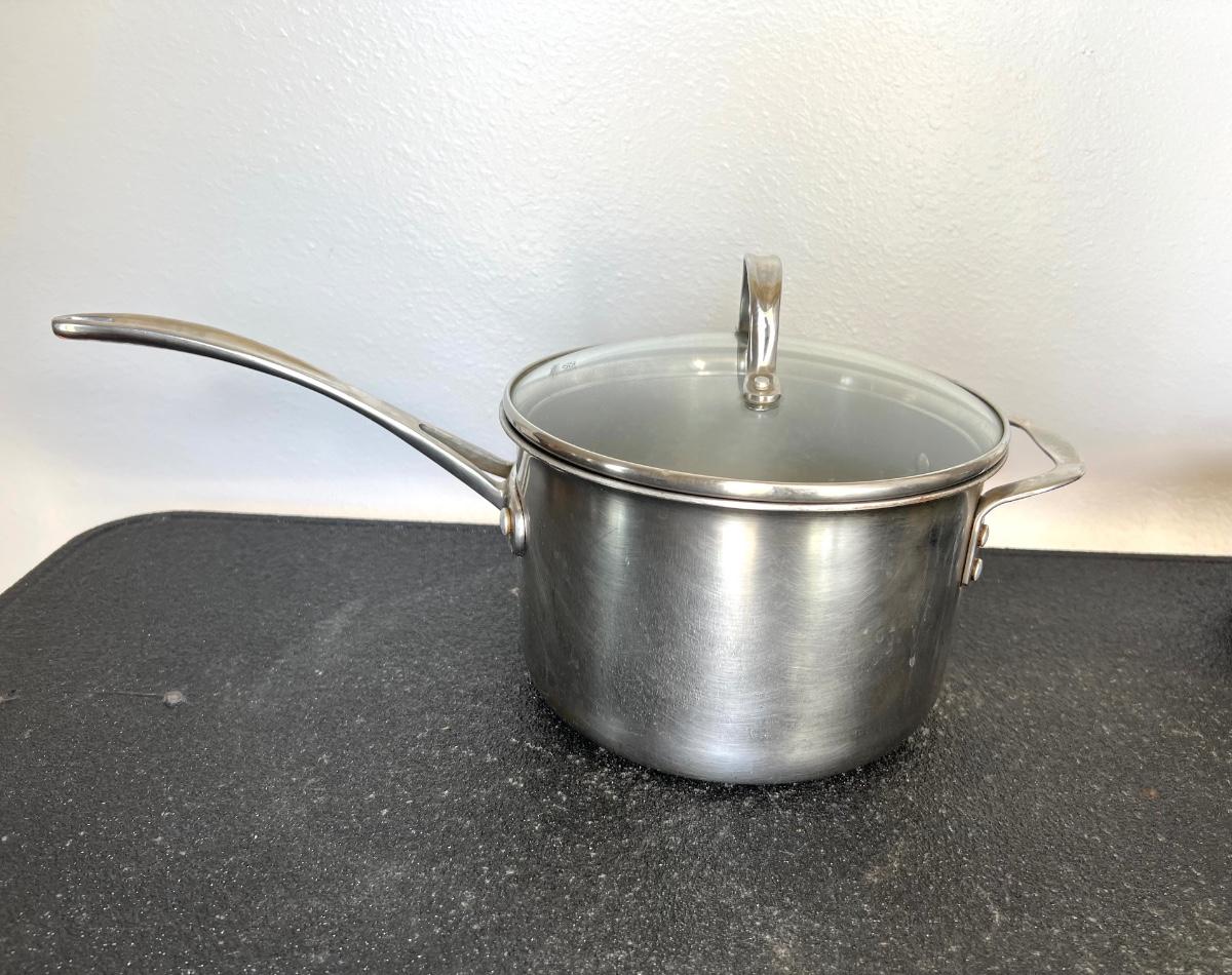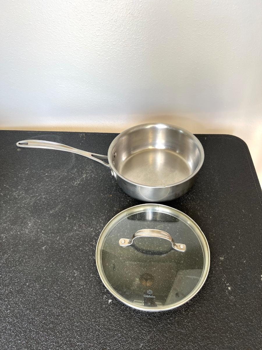 CALPHALON Stainless Steel set of 3 with lids. Sizes 8704 1/2“¢ 4 1/2 quart. 87822“¢ 2 1/2 quart. 8701 1/2 “¢ 1 1/2 QT. 855-30T Casserole 5.5 QT