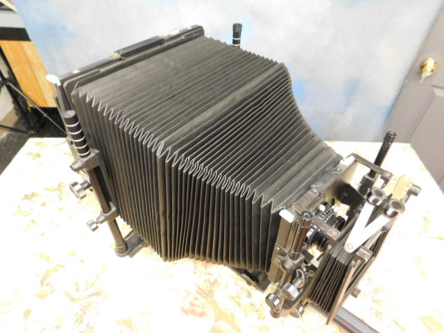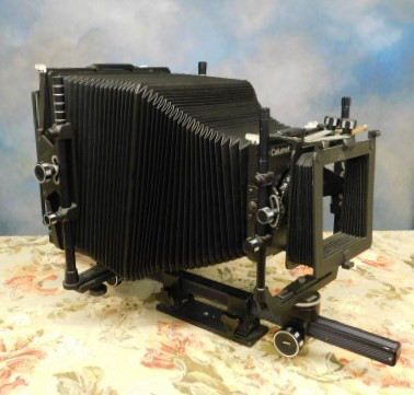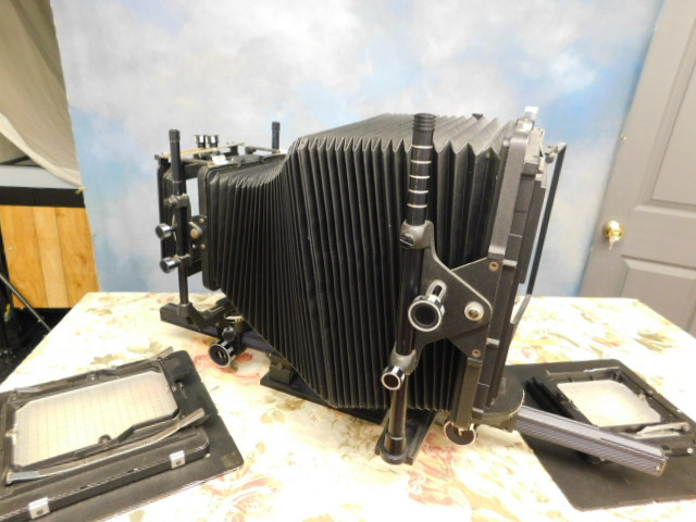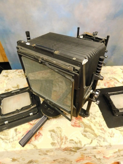 Calumet 8x10 monorail Camera with 5.6 Lens 180mm (See More Below) includes Calumet lens shade 4x5 and 5x7 backs which rotate vertically and horizontally. Working condition.
