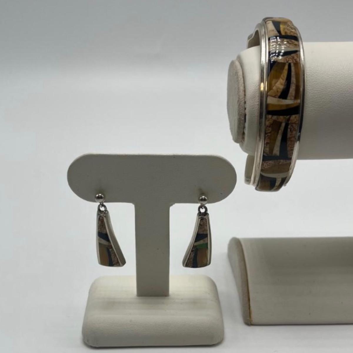 Calvin Begay Sterling & Inlaid Stone Earrings & Cuff (B1-MG)