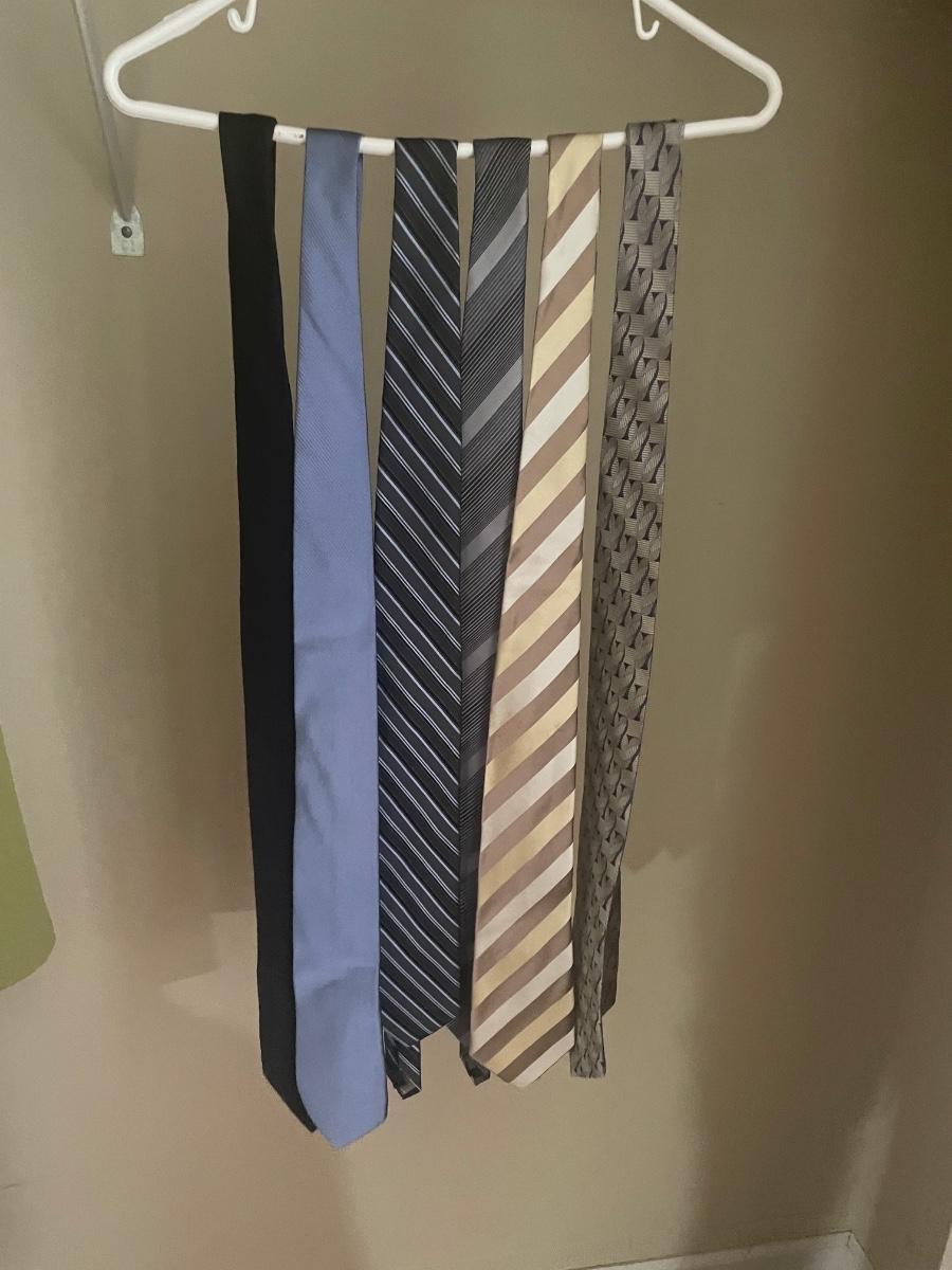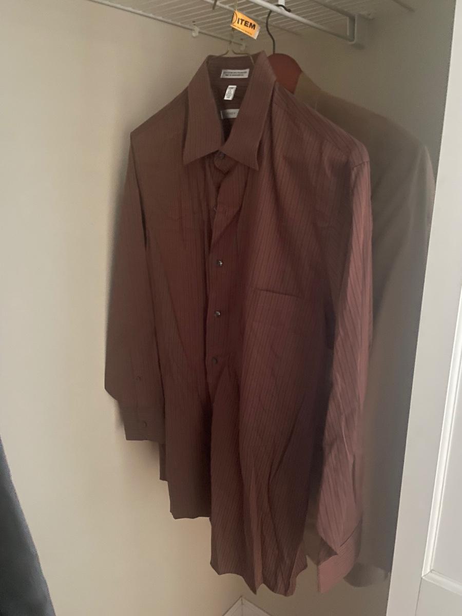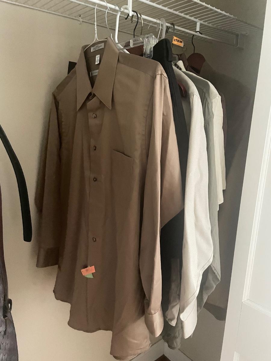 A great assortment of ties, shirts (both dressy and casual), pants, shorts and belts. Includes brands such as Calvin Klein, Roundtree & Yorke and more, see images for sizes. Some are new with tags.