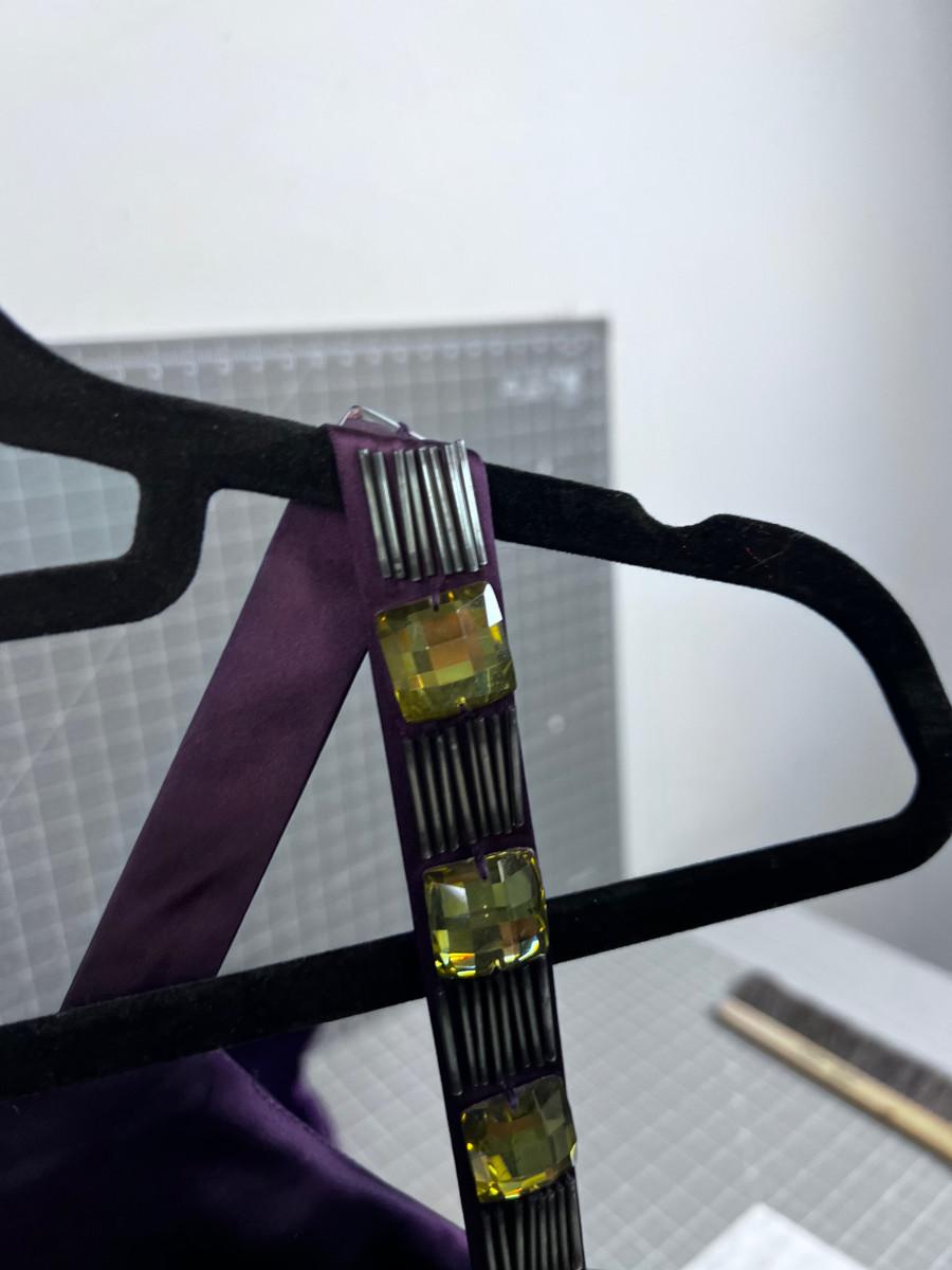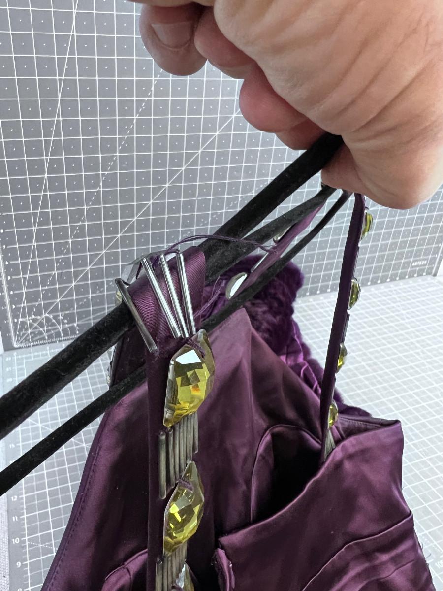 See photo on the Strap. This is a designer dress Size 4 WEARABLE to that hot party or the quicky trip to Vegas.