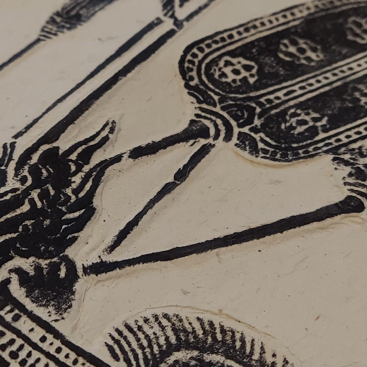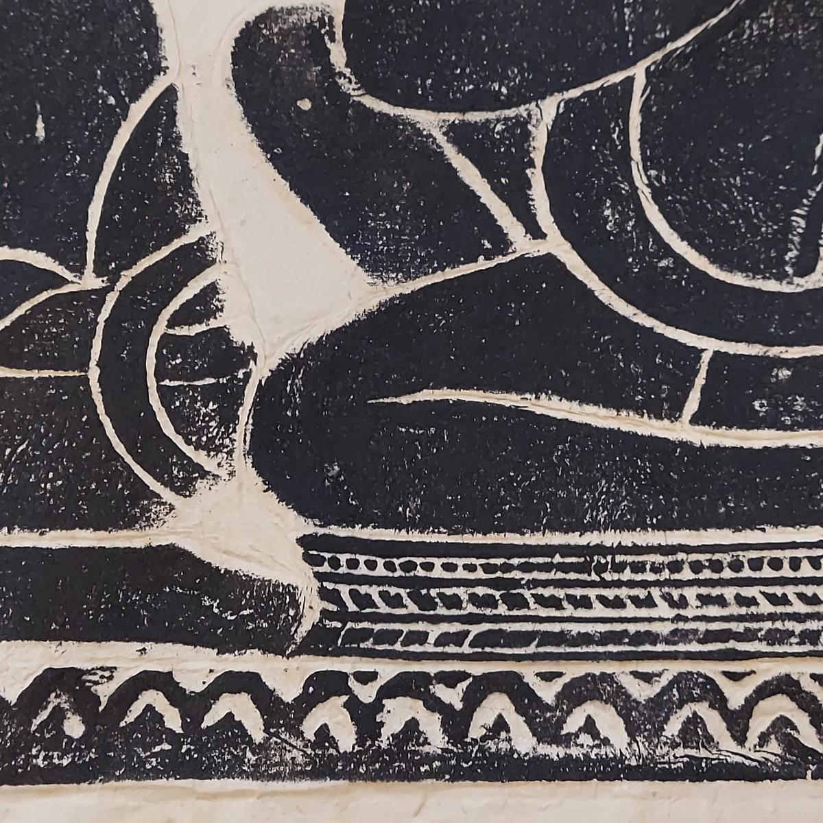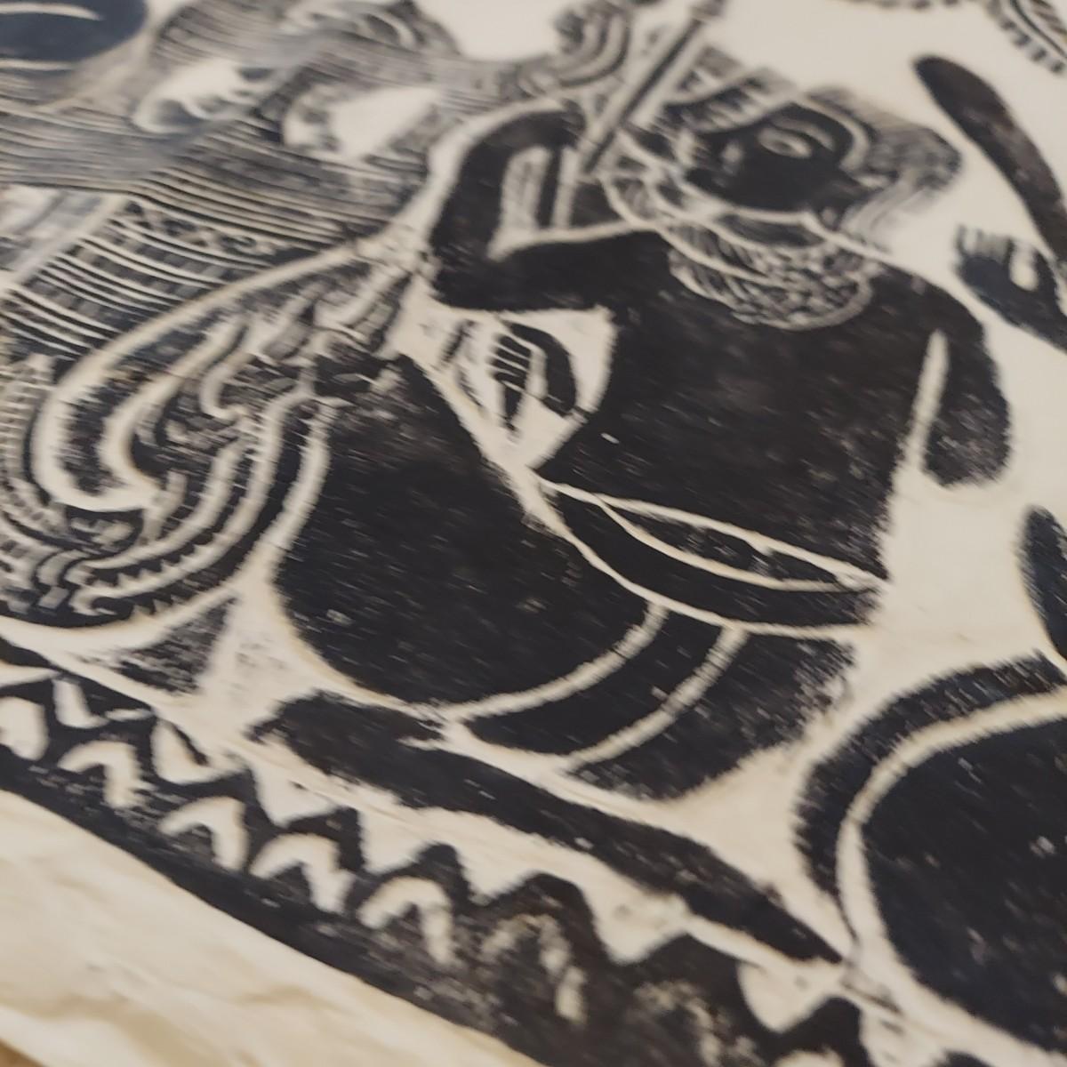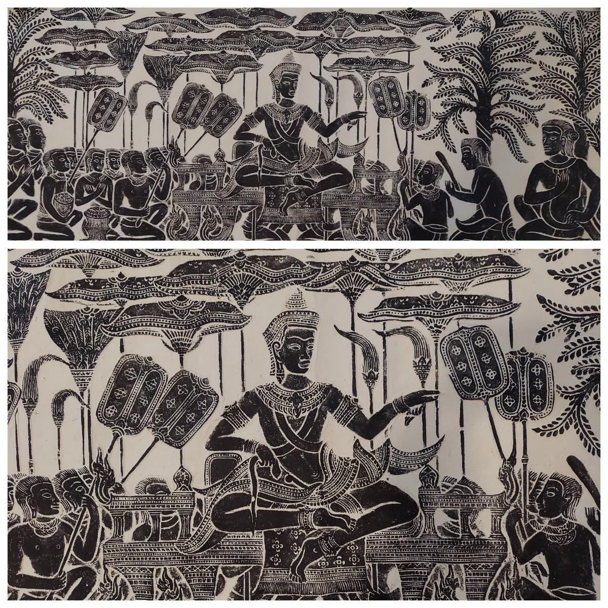 Large paper art piece that appears to be a Cambodian Temple Rubbing. It measures 47” x 21"H. Please see photos for details. Shipping available