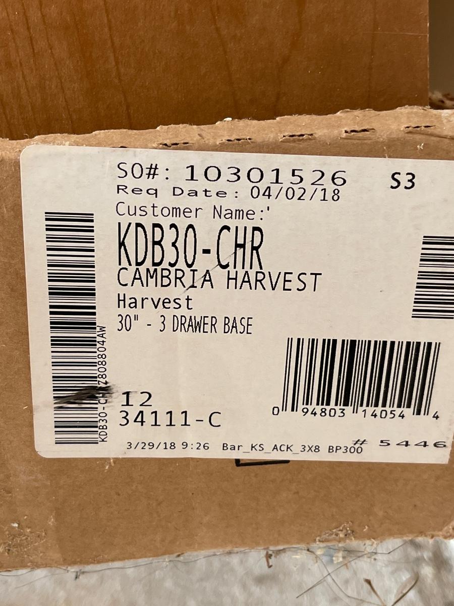 Cambria Harvest 30” 3 Drawer Cabinet ~ New