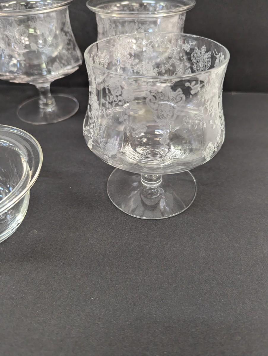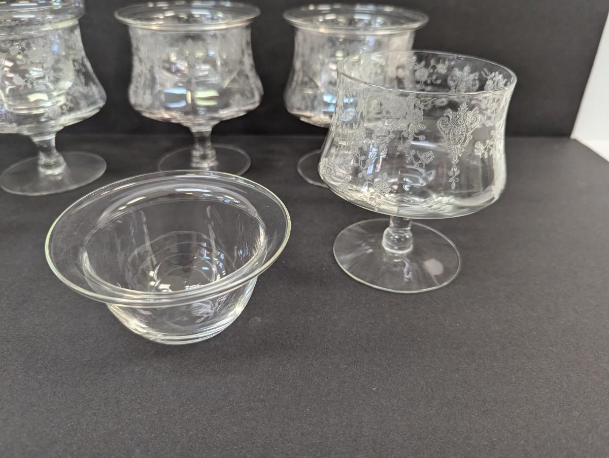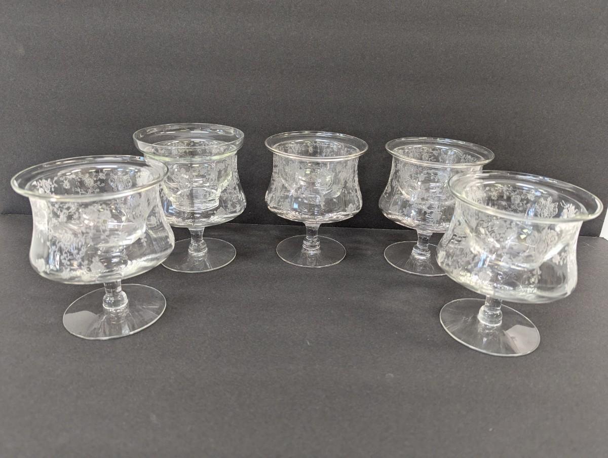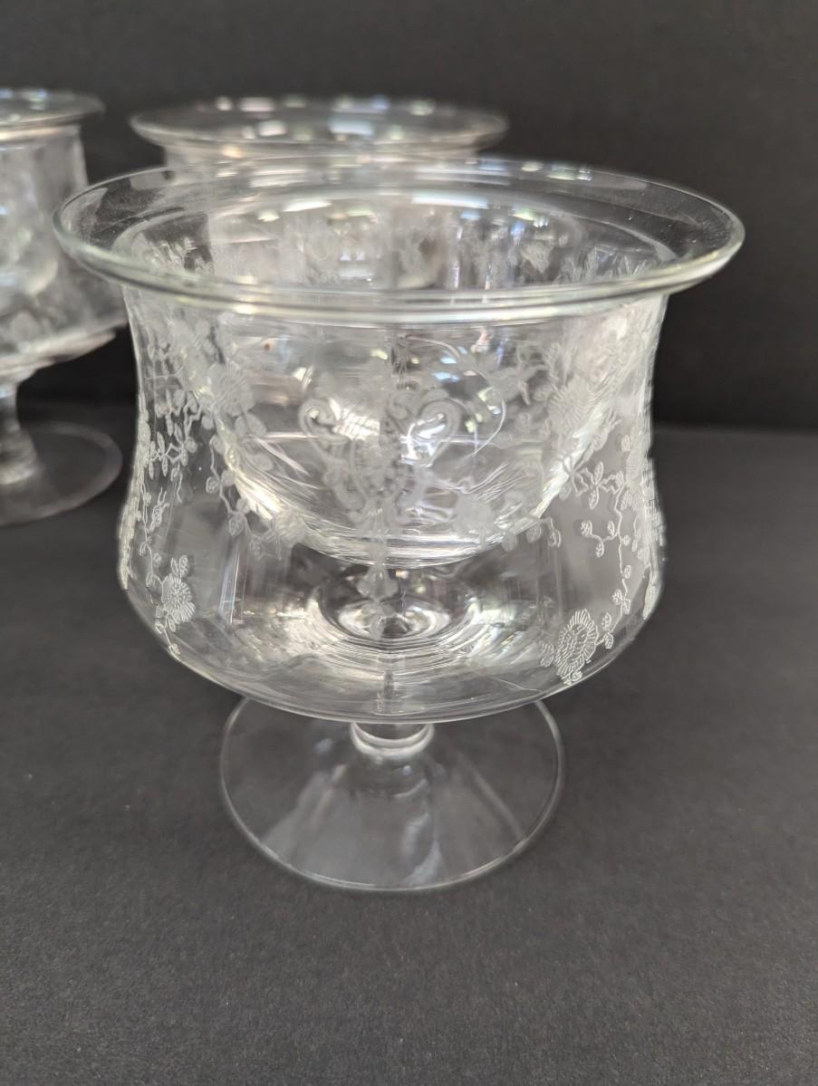 Etched Cambridge Diane Seafood Cocktail Glasses With Liners