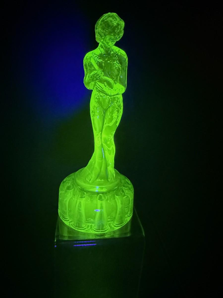 Bashful Charlotte, uranium glass made by Cambridge Glass Co, 1930s