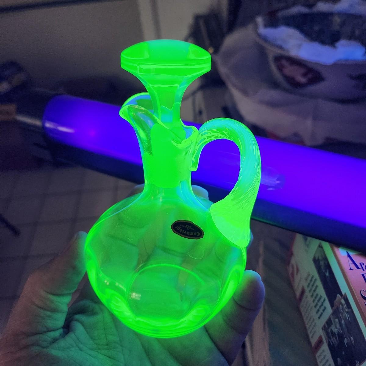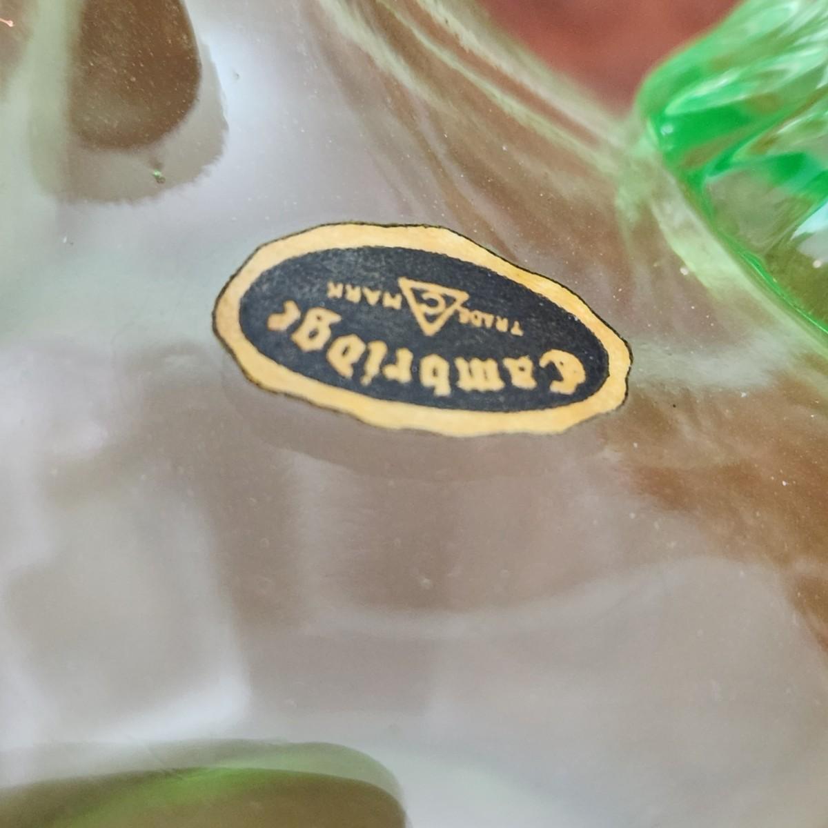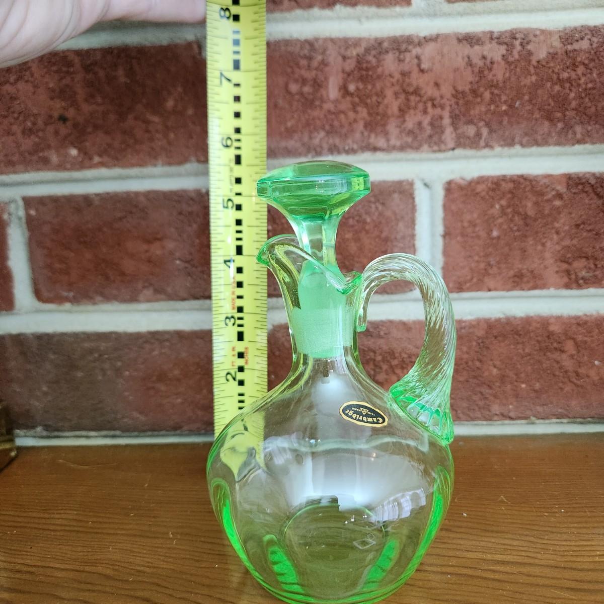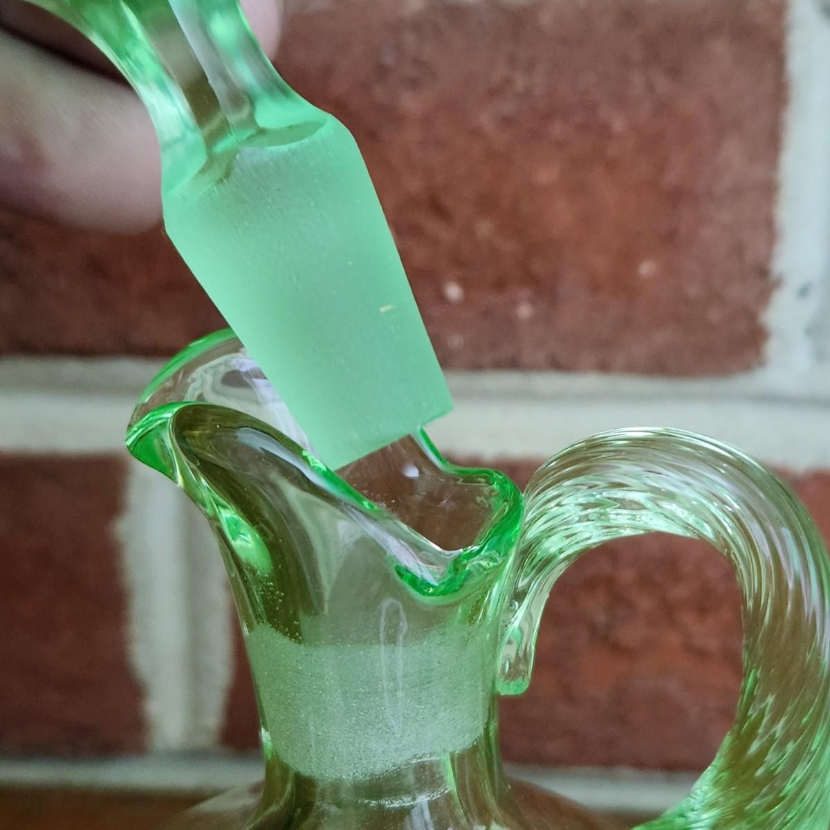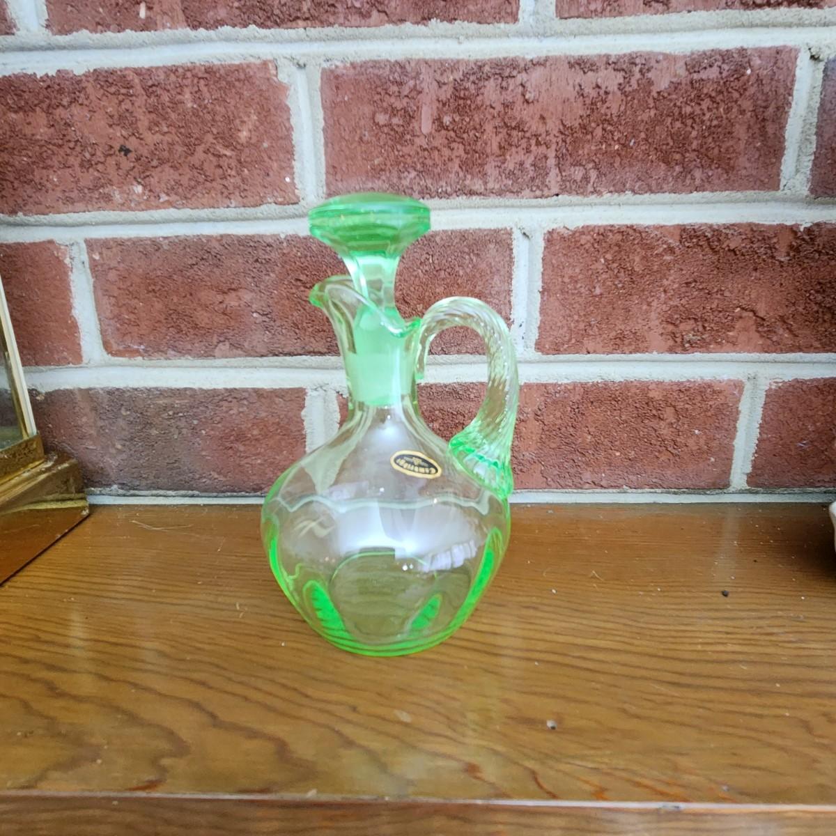 Cambridge Green Elegant Art Deco Uranium Glass Cruet w Original Stopper