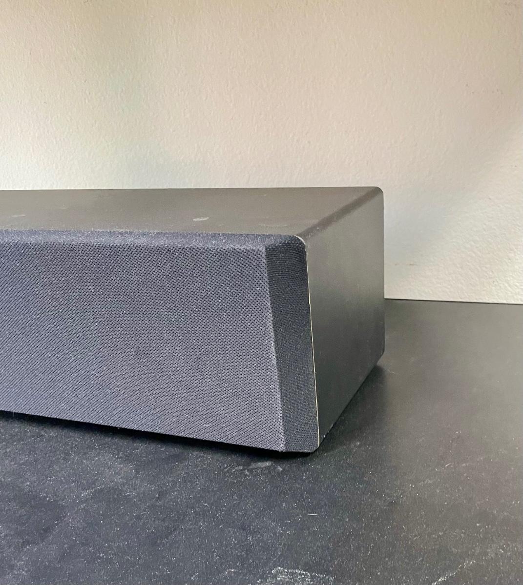 Center channel speaker for surround sound or similar systems. Measures approx. 25" long, 8" deep and 6.5" high. Untested but appears to be in good working order.