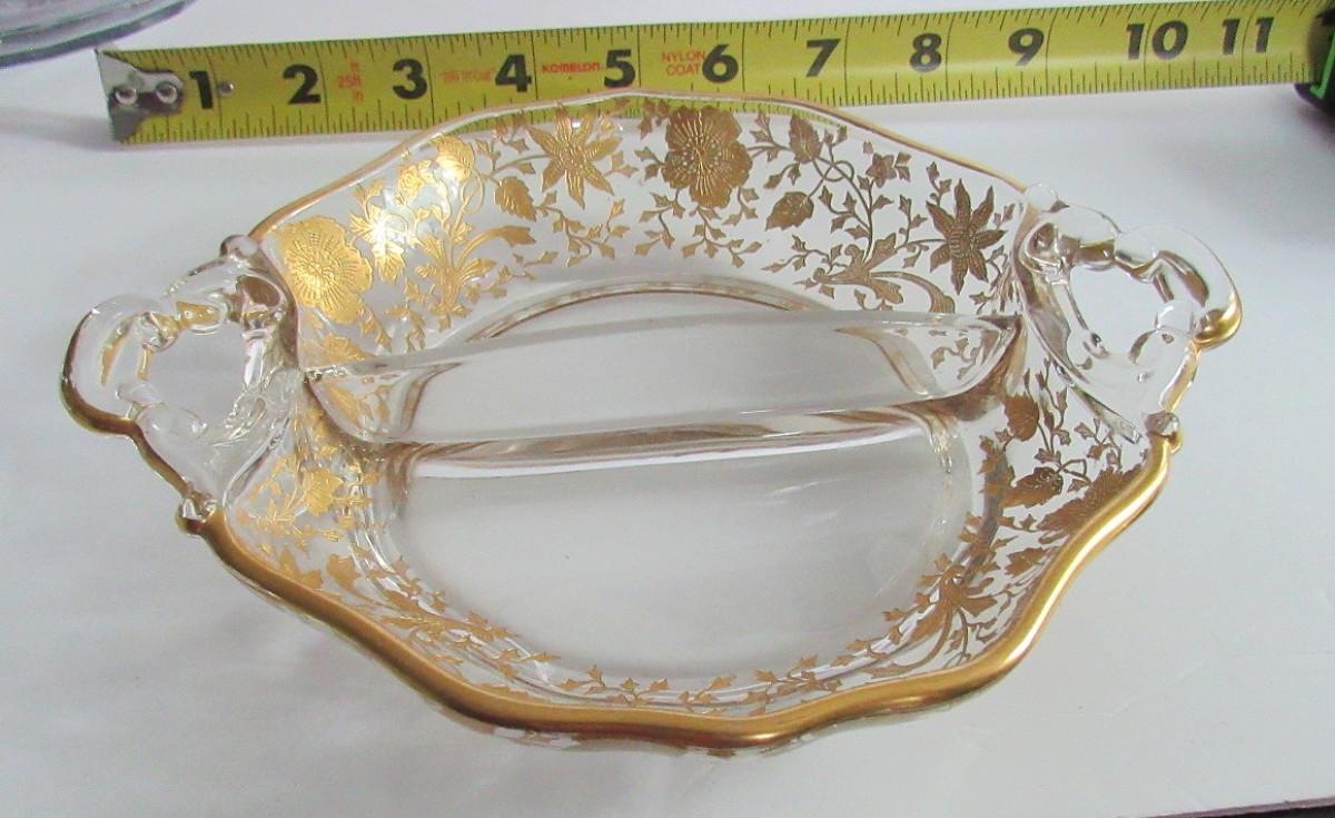 Cambridge Wildflower Gold Encrusted Small Divided Relish Dish
