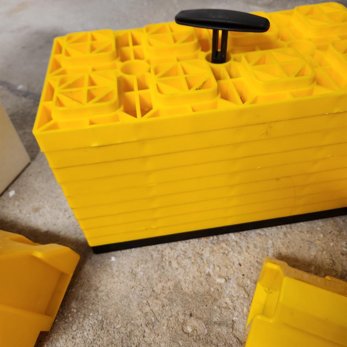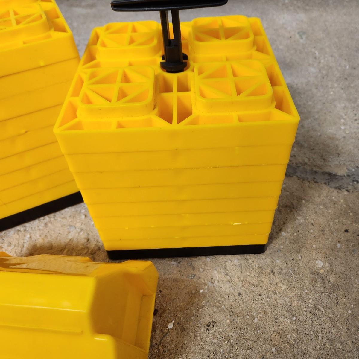 Camco's FasTen Leveling Blocks allow you to stack the interlocking blocks to the desired height for safe and easy leveling. Each block adds a full inch to the stack height. They can be used with single wheels, double wheels, hydraulic jacks, tongue jacks, stabilizer jacks, fifth wheel jacks and tandem axles.