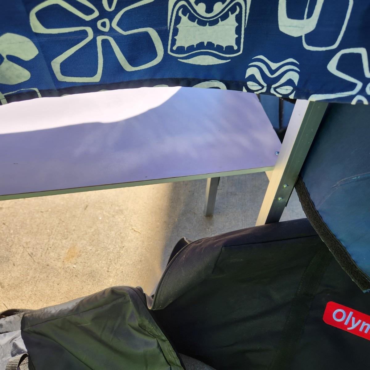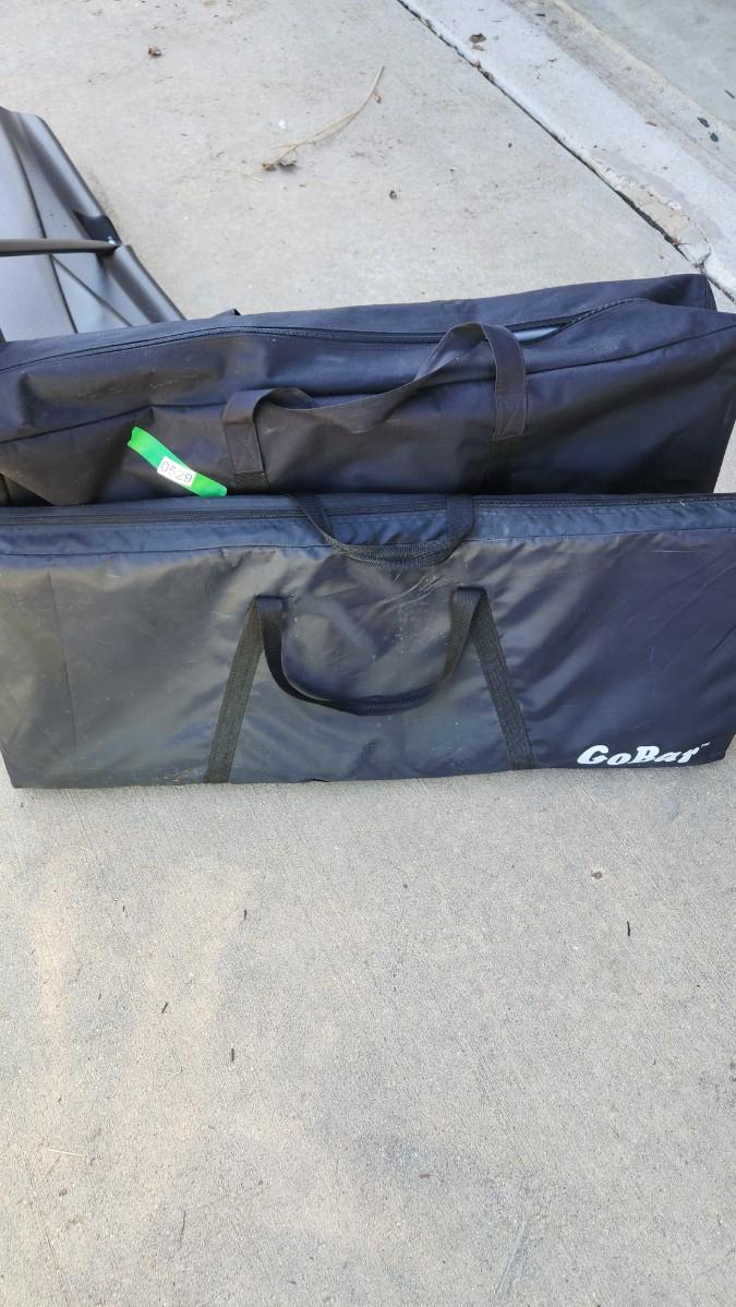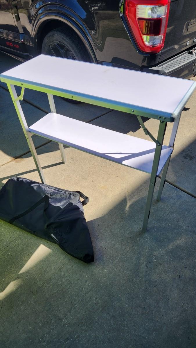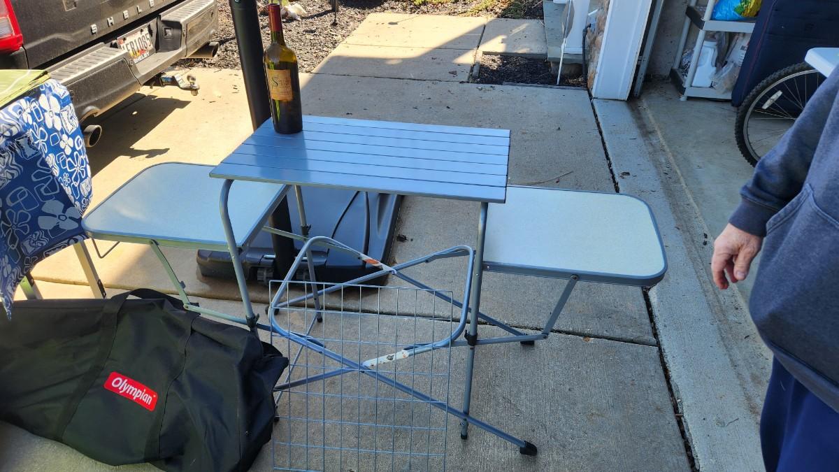 Camco Olympian Folding Grill Table and Folding GoBar Table w Several Skirts