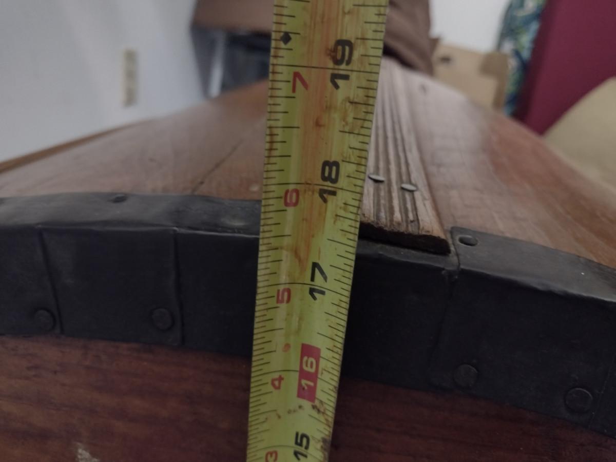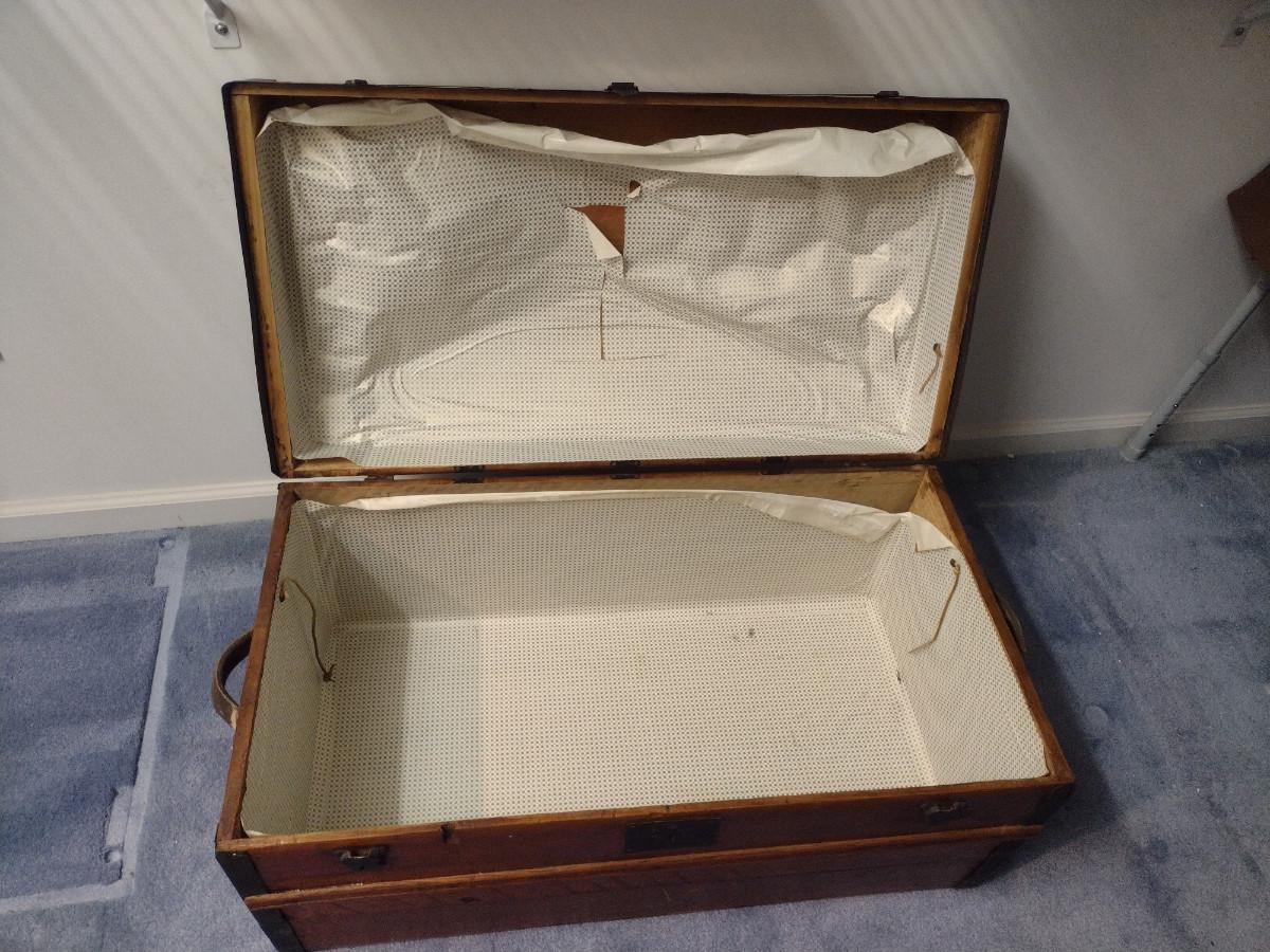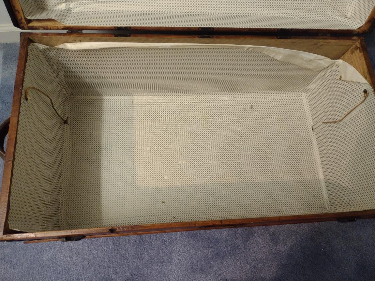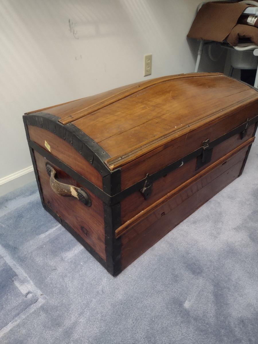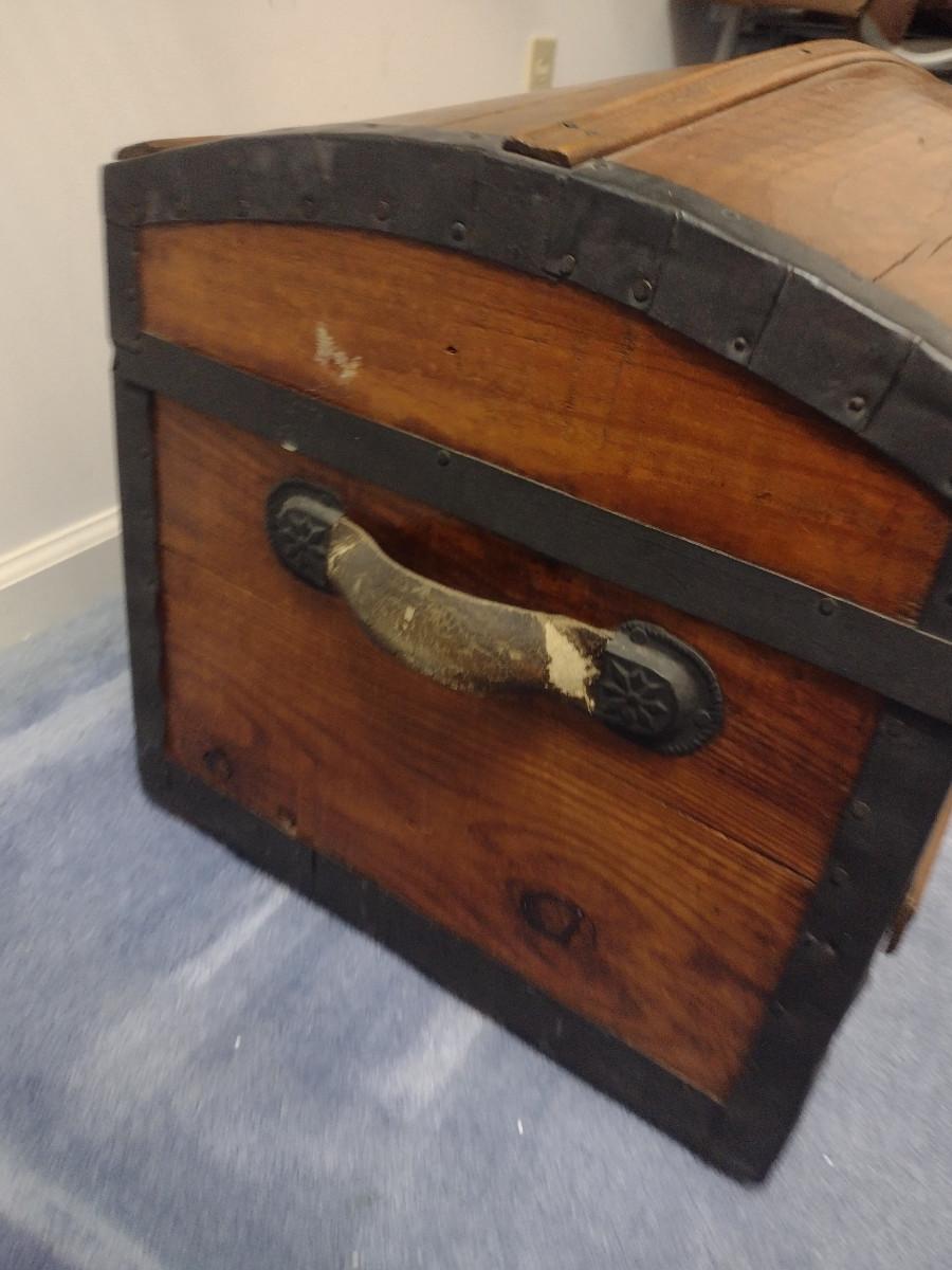 Camel Back Wooden Storage Trunk. Handles have wear.