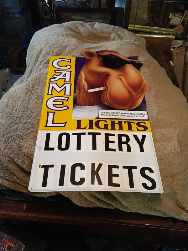 Camel Lights Tobacco and Lottery 17” x 28” Metal Store Advertising Sign. LOT 38