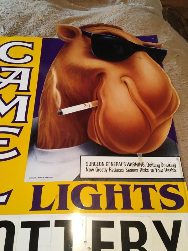 Camel Lights Tobacco and Lottery 17” x 28” Metal Store Advertising Sign.