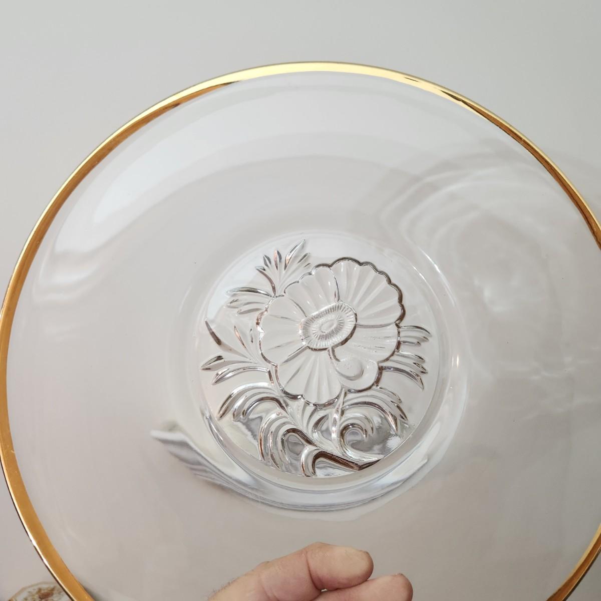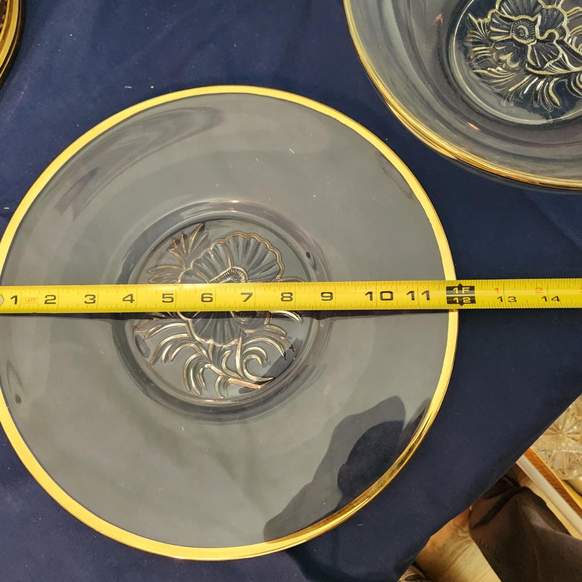 Camellia by Jeannette Glass Bowl 10" & Plate 12" Gold Trim