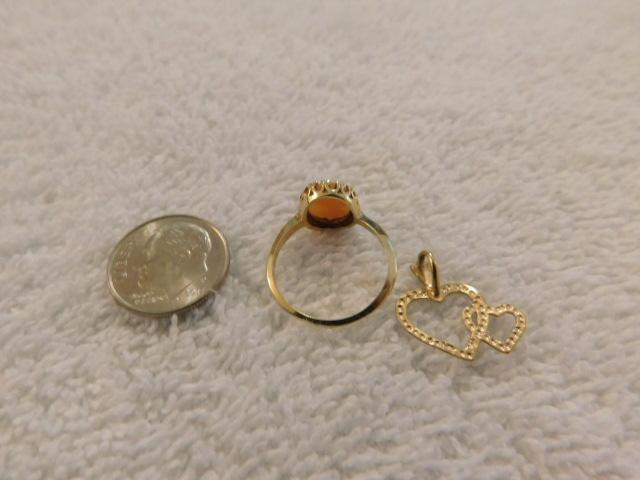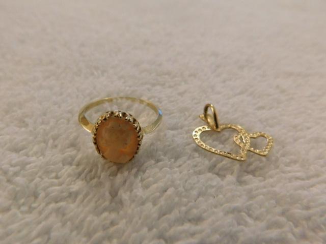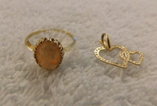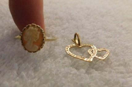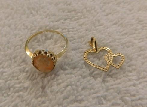 Cameo 10k Gold Ring with 14K Gold Double Heart Pendant