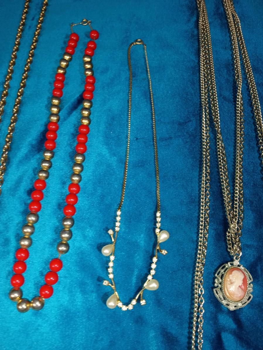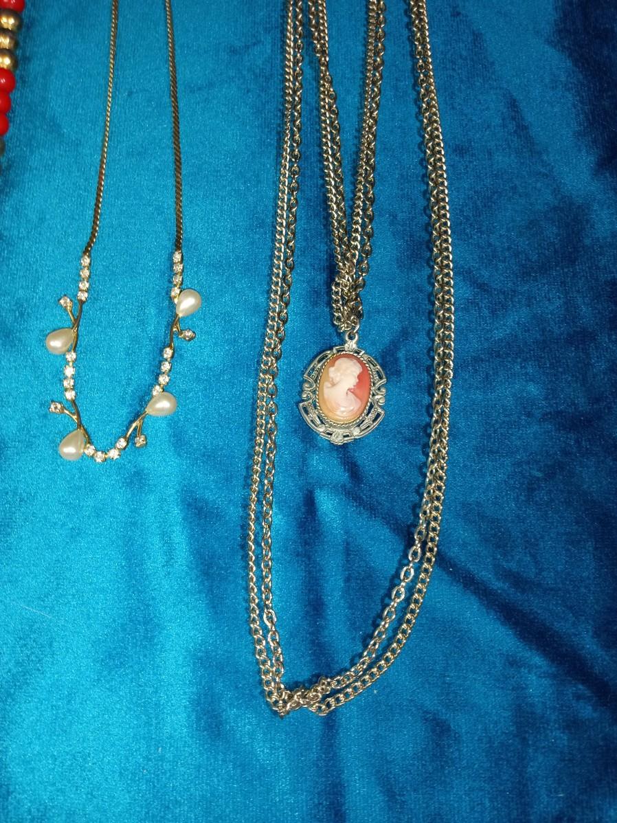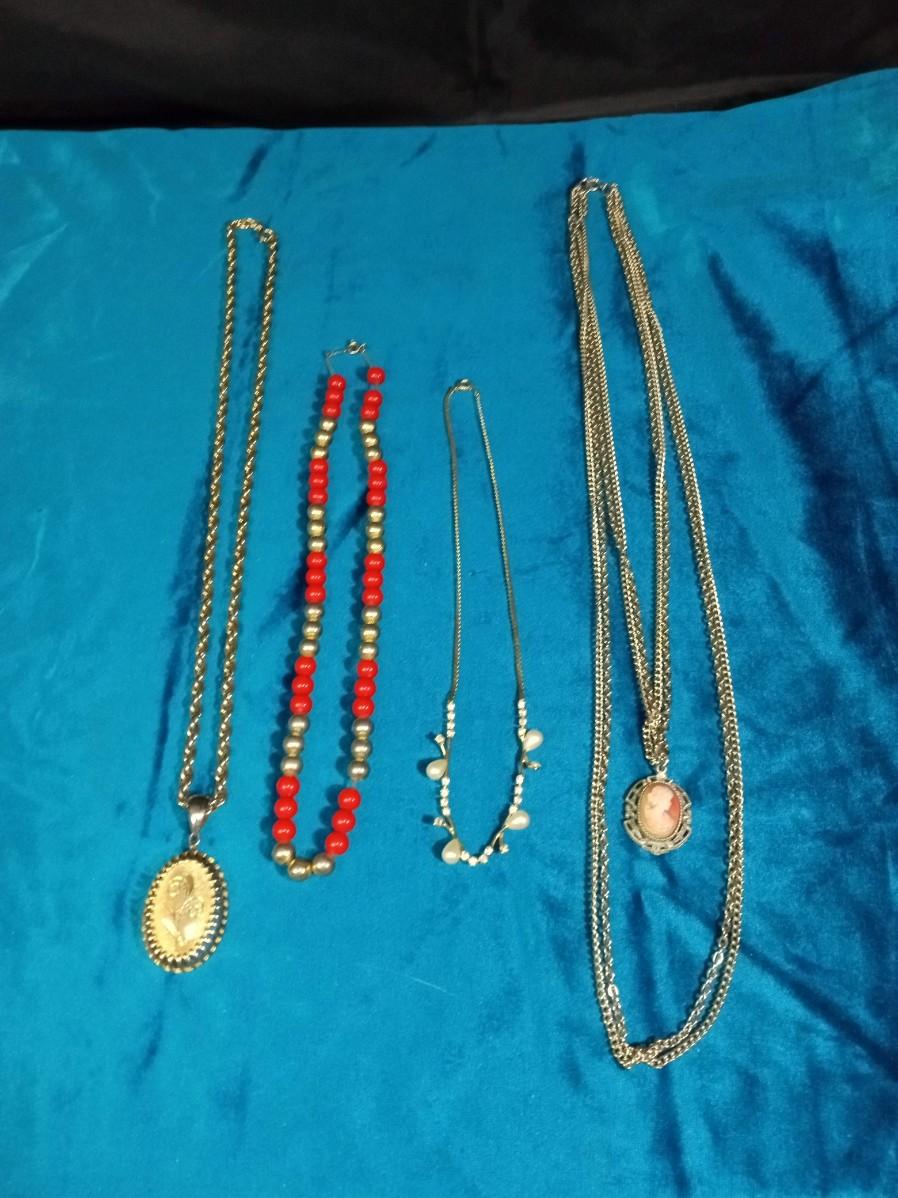 CAMEO AND 3 OTHER COSTUME NECKLACES