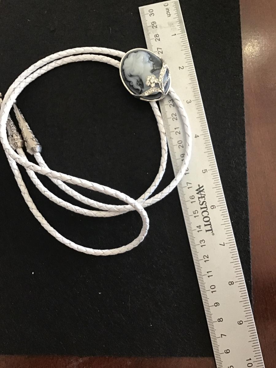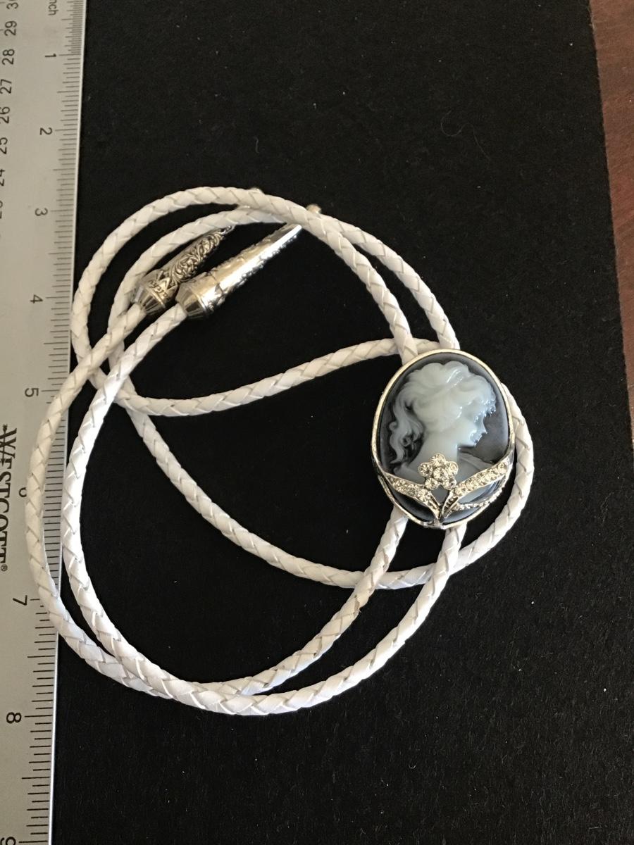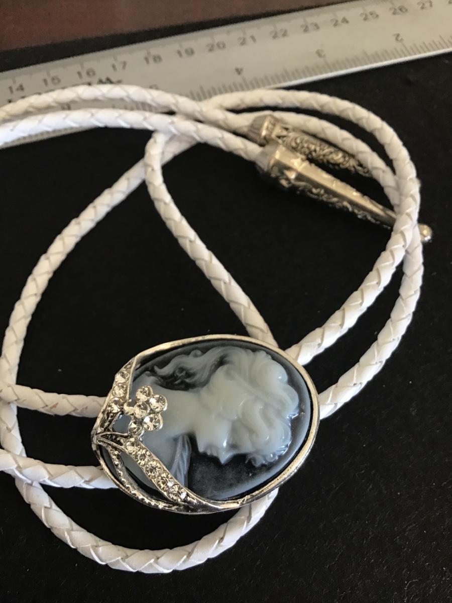 Cameo Bolo Tie White Leather