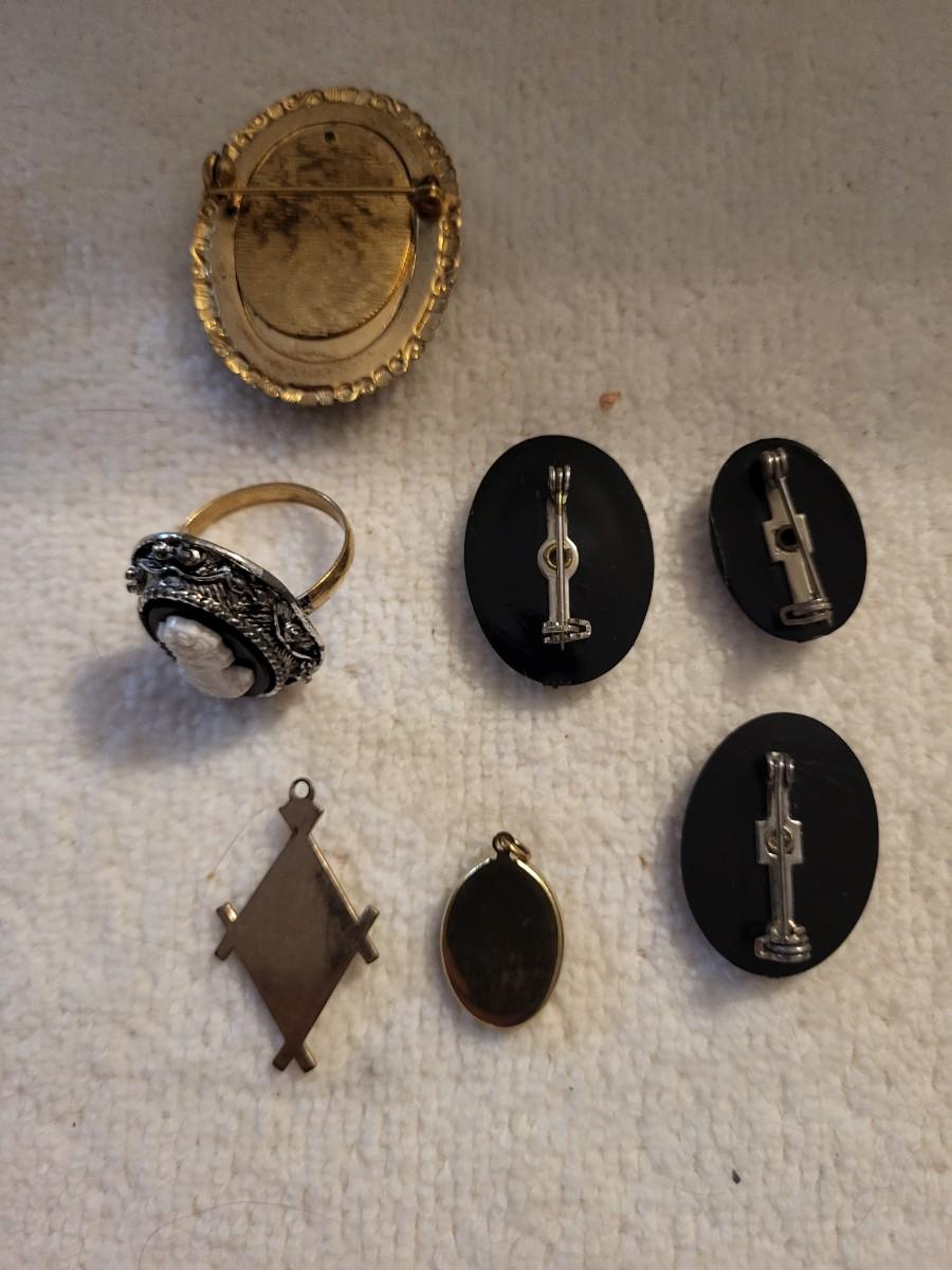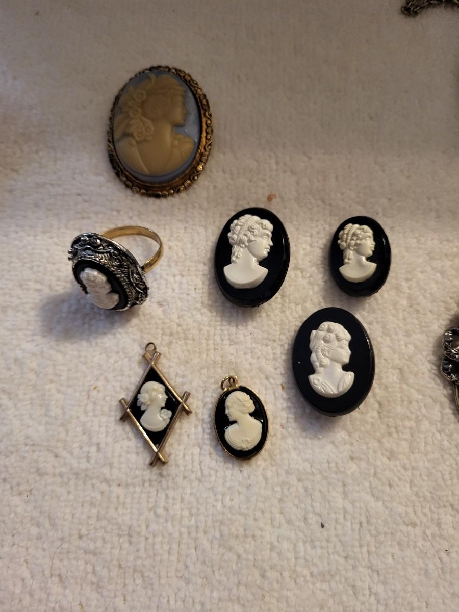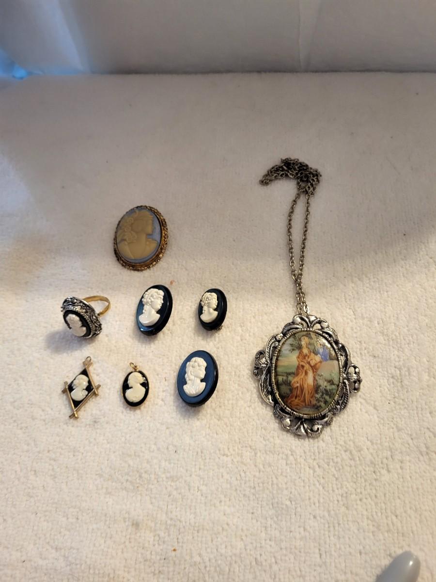 CAMEO BROOCHES, RING, NECKLACE & PENDANTS