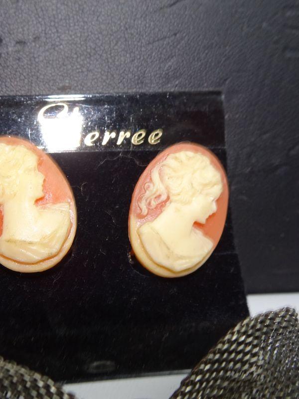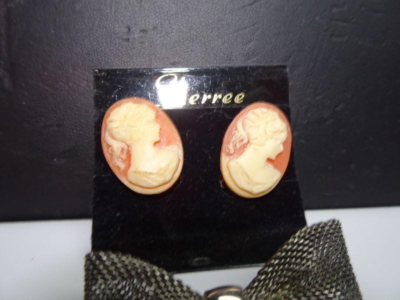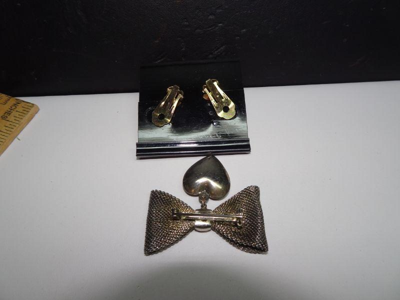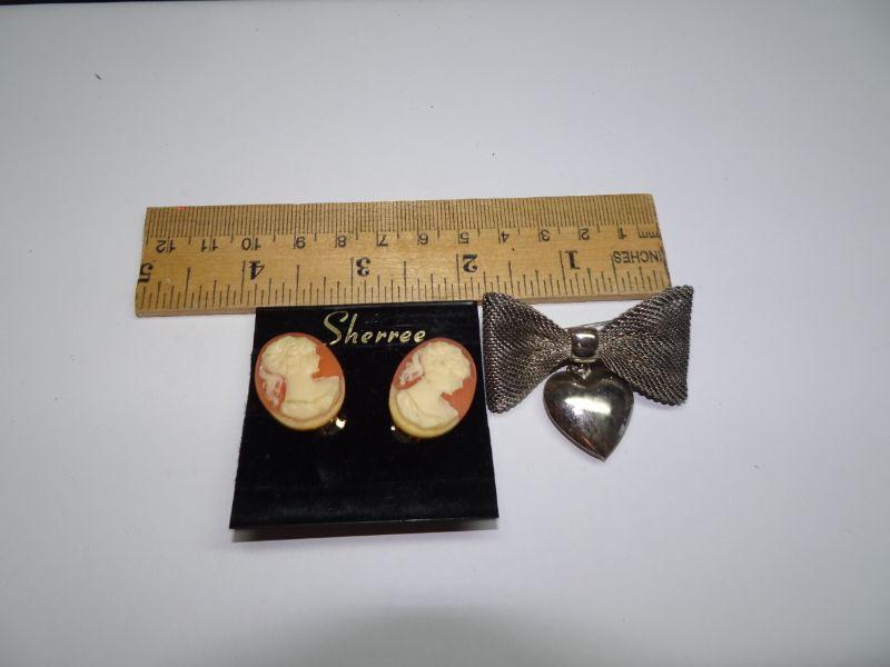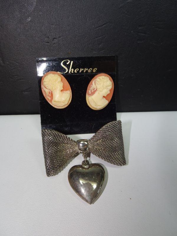 Cameo Clip-On Earrings and Mesh Hollow Heart Bow Pin