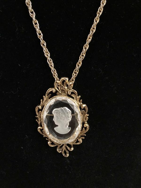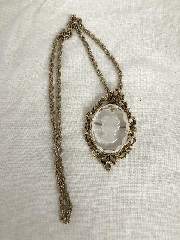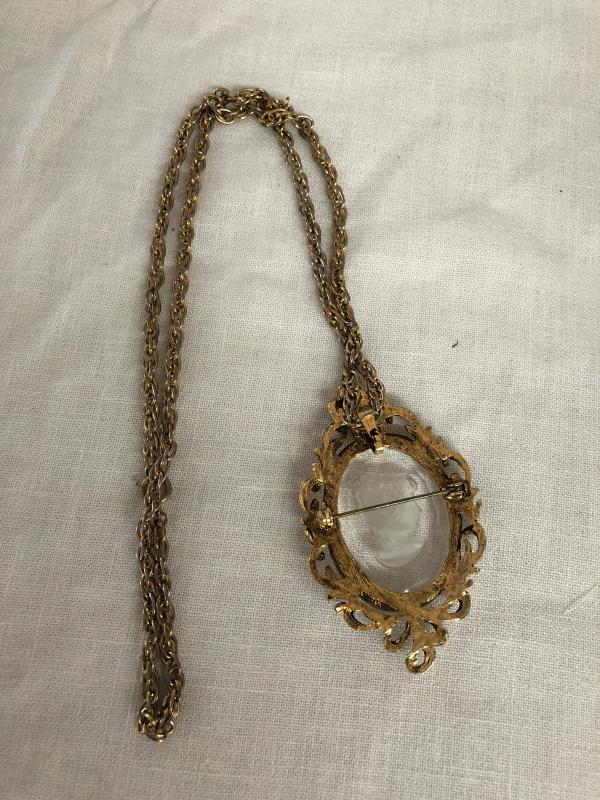 Cameo Gold Tone Pendant and Chain (Item 858)