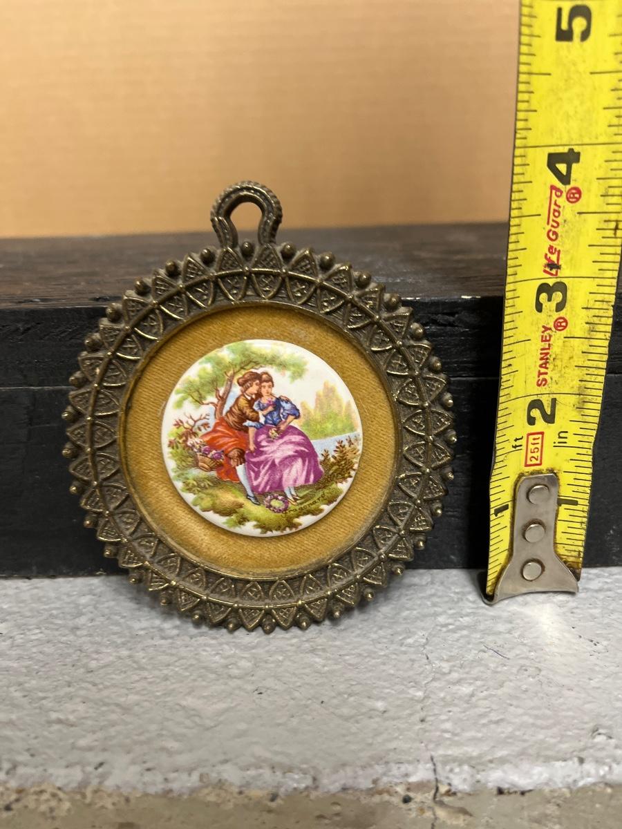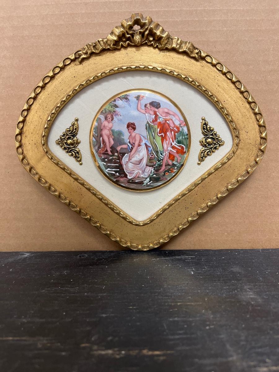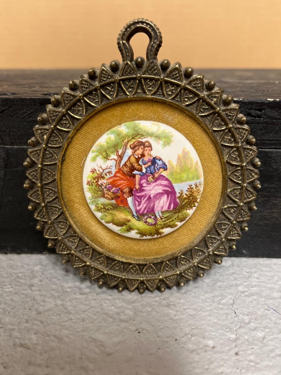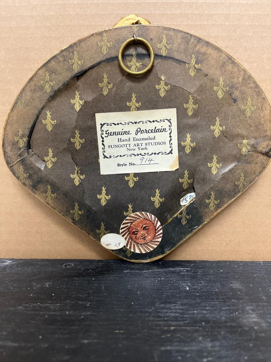Pair of Sungott porcelain cameos and Fargonard cameo wall hanging