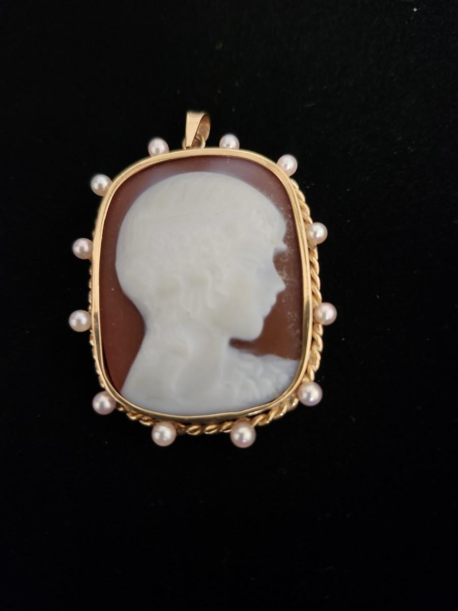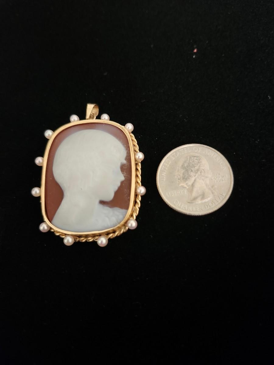 Cameos are rarely found with a young boy. Seed pearls are embedded